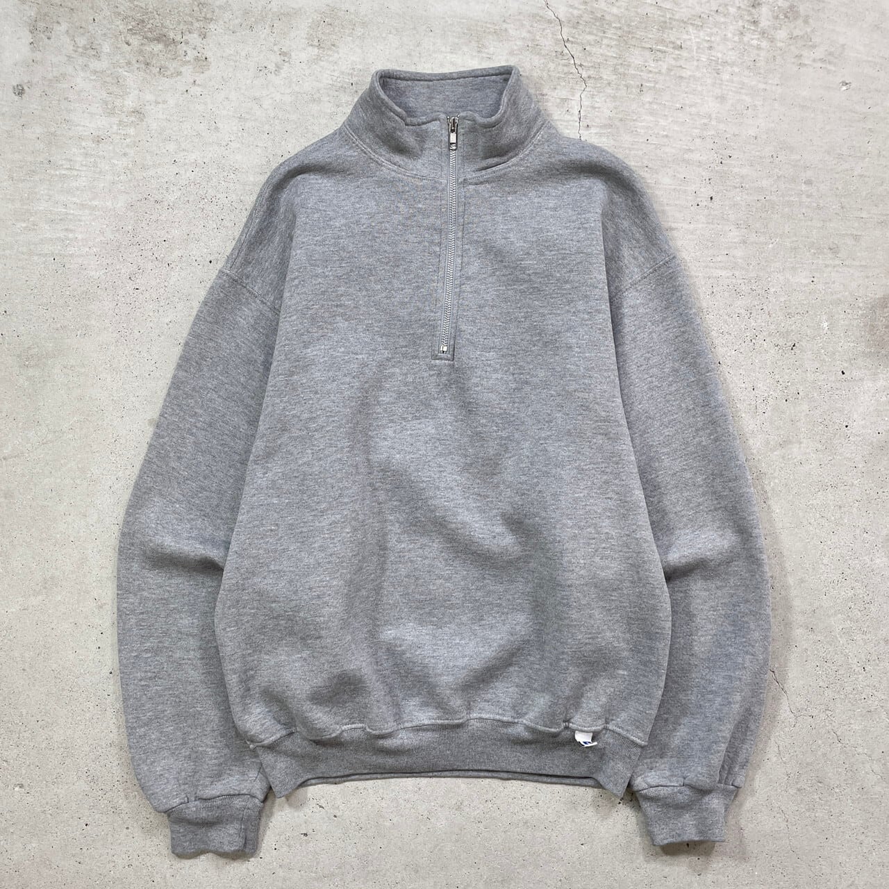 90年代 USA製 RUSSELL ATHLETIC ラッセル ワッフル地 ハーフジップスウェットシャツ ブランクスウェット 無地 メンズXL