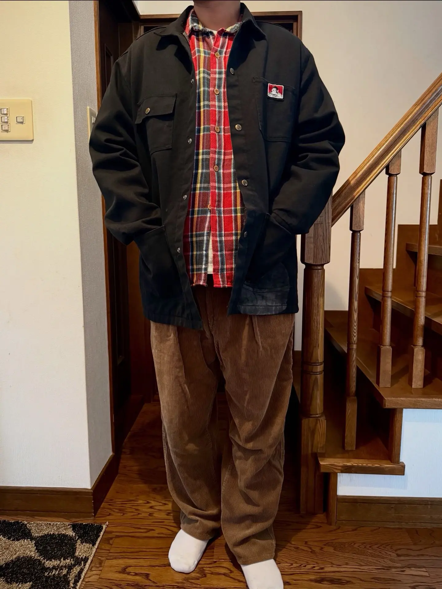 レッド系のチェックネルシャツ、ブラックのカバーオール、ブラウンのコーデュロイパンツを合わせたワーク系カジュアルスタイル。 ネルシャツもコーデュロイもアウターも着れる良い感じの気温になってくれましたね。 赤のネルシャツだけやったらアメリカオジすぎるけど、カバーオールきたらバランスとれてええ感じ。 カバーオールのだいたんすぎるペンキ汚れ大丈夫かなって思ったけど逆にアクセントになってええかも。 やっぱり服は冬がおもろい。 トップス:#bigmac アウター:#bendavis パンツ:#poloralphlauren #メンズコーデ #メンズファッション #アメカジ #冬コーデ #古着 #服好きな人と繋がりたい #ファッション好きな人と繋がりたい #オシャレさんと繋がりたい #キレイめカジュアル #大人カジュアル #今日のコーデ #古着ディグ #ネルシャツ #カバーオール #コーデュロイパンツ #チェックシャツ