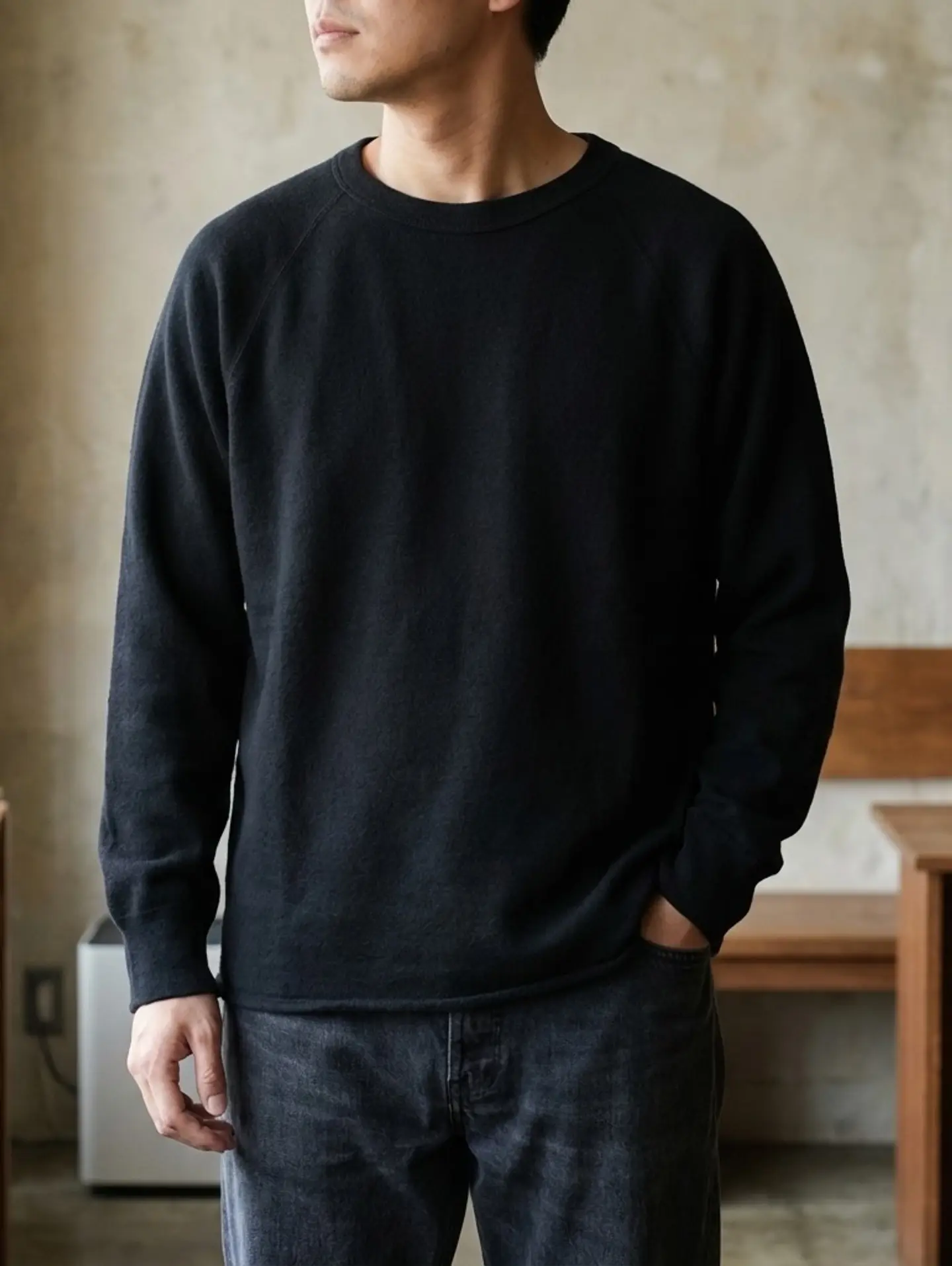 ワラワラスポーツ アメリカ製 無地 スウェット ブラック 長袖 綿 丸首 M
