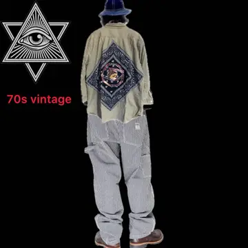 70s R.B.U シャツ リメイク猫目ボタン オルテガ 刺繍 Fメイソン