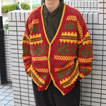 古着 アルパカ混 デザイン カーディガン セーター 総柄 柄