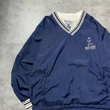 90s チャンピオン 刺繍企業ロゴ ラインリブ ナイロンプルオーバー