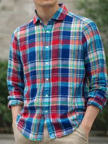 00s ラルフローレン 刺繍ロゴ ポニー チェック総柄 ボタンダウンシャツ