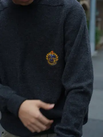 古着 刺繍 デザインニット ニット セーター カーキ アクリルニット