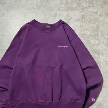 90s チャンピオン 刺繍ワンポイント 前V パープル スウェット トレーナー