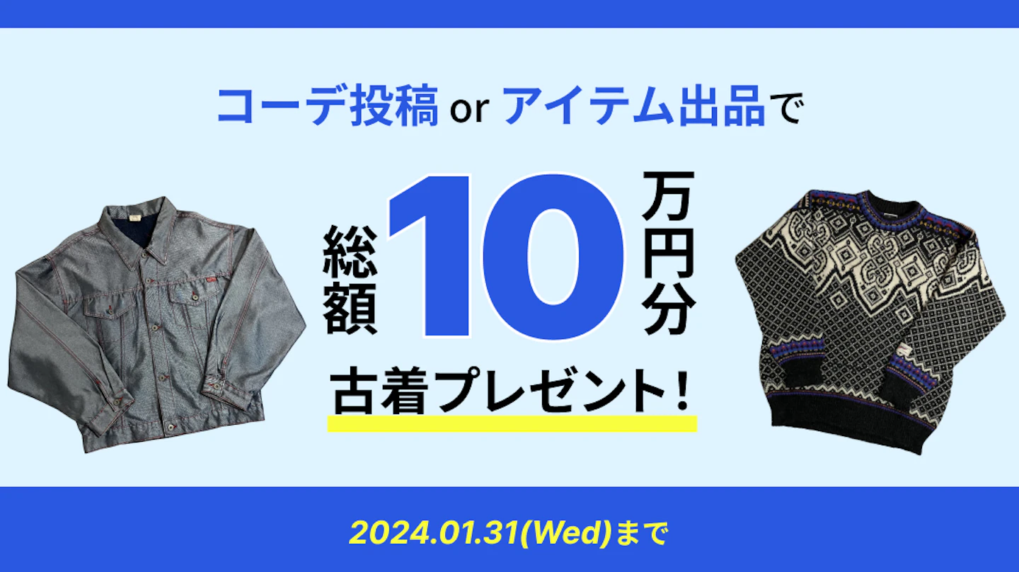 コーデ投稿orアイテム出品で総額10万円分の古着プレゼント!