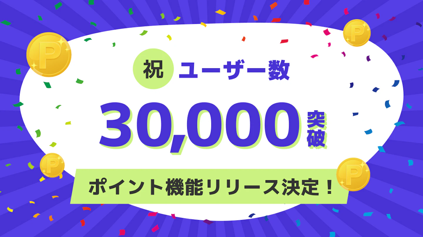 祝ユーザー数30,000人突破!ポイント機能リリース決定✨
