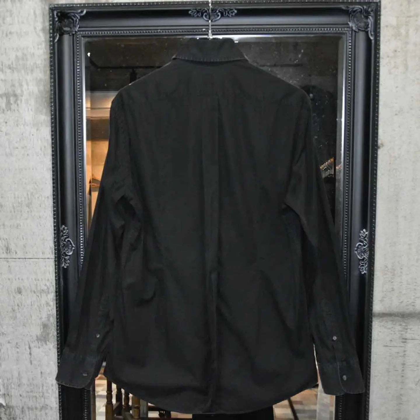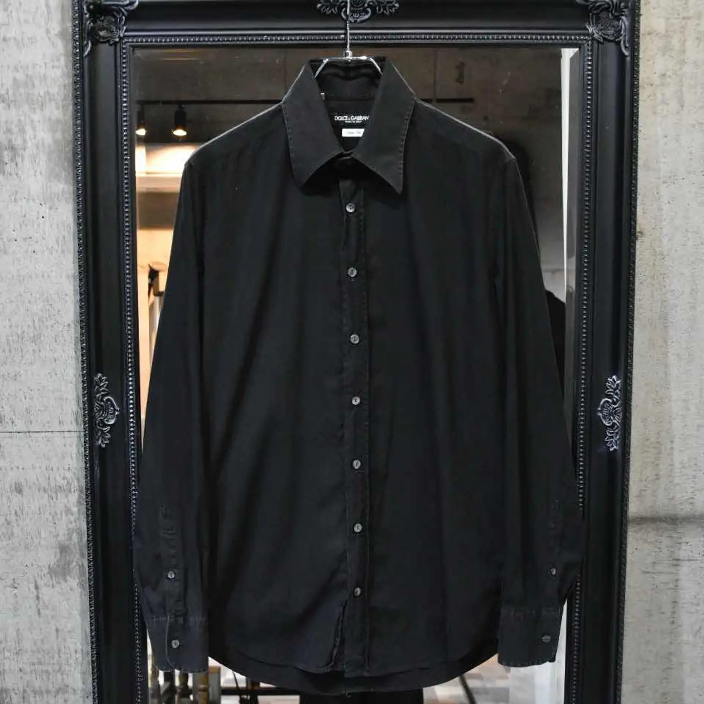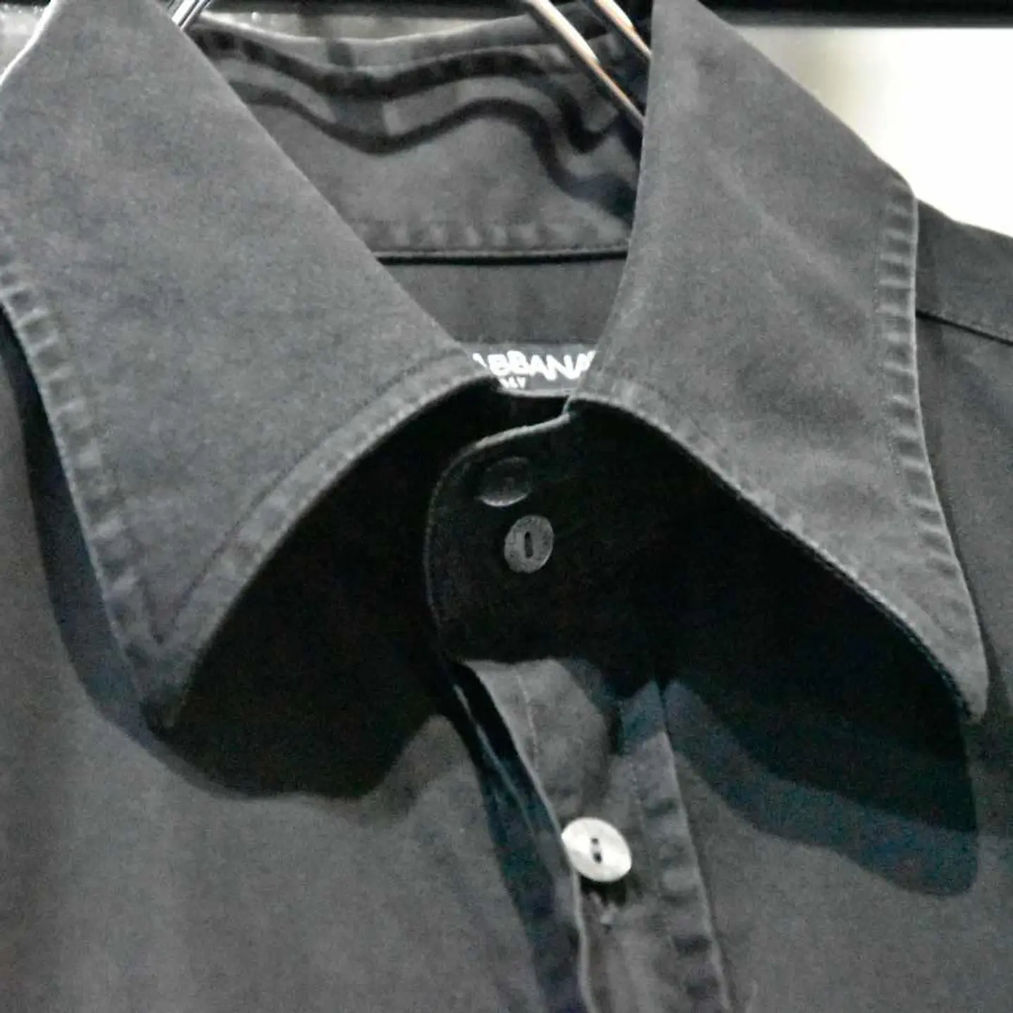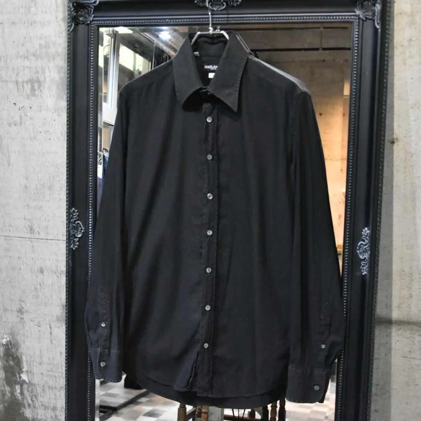 【商品名】 DOLCE & GABBANA slim shirt 【アイテムについて】 イタリアのファッションブランド DOLCE&GABBANA 本場イタリア製の黒シャツになります。 タグに記載の通りスリムですので、身幅狭くドレスな印象強めです。 光沢のある黒シャツはどこかギラついた印象になりやすいです。 しかし、当シャツはマットな質感+古着特有の使用感のある色落ちのおかげでナチュラルに使いやすい黒シャツに仕上がっています。 黒シャツ持っていない方がいきなり挑んでも後悔はさせません。 【サイズ】 肩幅 : 43 着丈 : 83 袖丈 : 65 身幅 : 53 【素材】 コットン 【コンディション】 汚れ・傷はございません。 袖口は特に使用感のある色落ちを感じます。 #ヨーロッパ古着 #ブランド古着 #デザイン古着 #きれいめ古着 #セレクト古着