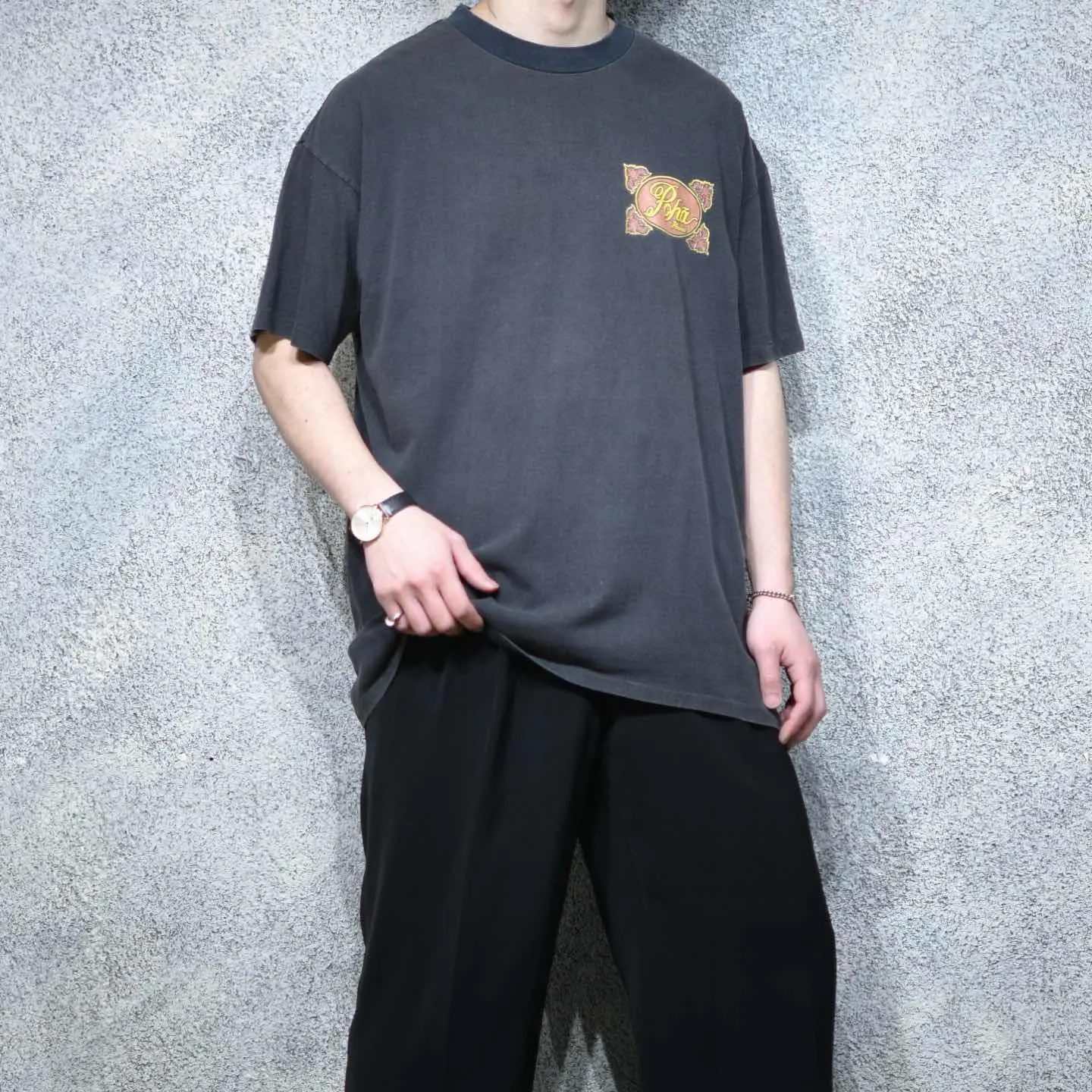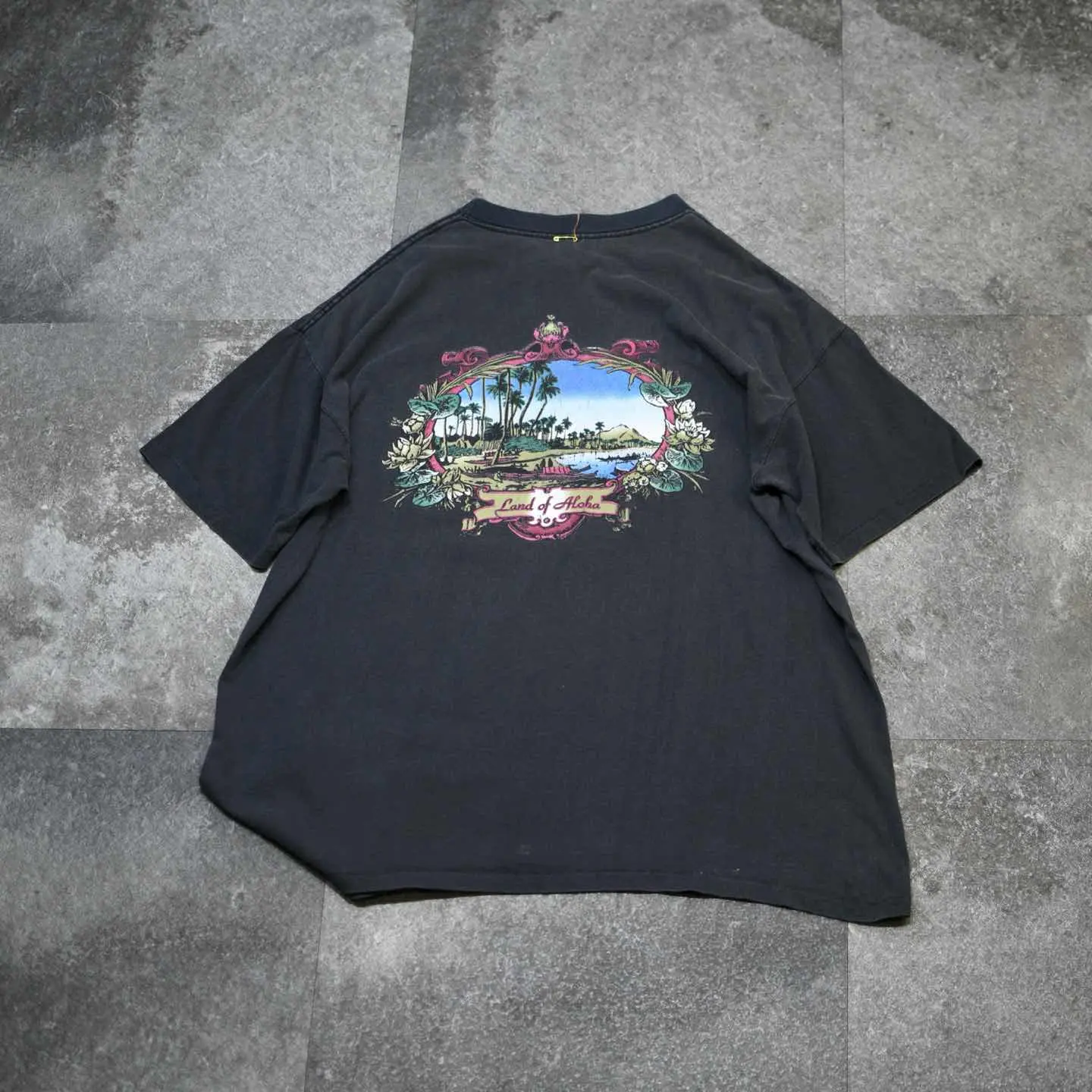 着丈71cm 肩幅63cm 身幅62cm 袖丈21cm(シングルステッチ) fabric/質感よりcotton 着用画像 177cm/64kg ハワイで販売されていたであろう スーベニアTシャツ。 ややフェードしたボディや、クラックした プリント、グラフィックなどに惹かれた一着。 サイズバランスも良く、程良くゆったりとした サイズ感。 こんなTシャツにデニムやチノ、軍パンなど 野暮ったいパンツで、雑に着たいなと。 ※撮影状況により、実物と多少色が異なる場合が ございます。 ※古着を取り扱っているため、気づかない汚れや ほつれ等がある場合がございます。 予めご了承ください。 ※サイズは着用感で選んでおり、表記サイズではございません。 古着 オーバーサイズ old vintage ヴィンテージ used 80's 90's アメリカ古着 ユーロ古着 メンズ レディース POLO RALPH LAUREN Eddie Bauer OLD GAP Eddie Bauer LANDS' END ランズエンド LLBean エルエルビーン オールドギャップ エディーバウアー ラルフローレン ブルックスブラザーズ Brooks Brothers 半袖Tシャツ ブラック 黒 バックプリント などがお好きな方 #vintage #オーバーサイズ #old #used #90s #80s #古着 #ヴィンテージ #アメリカ古着 #ユーロ古着 #古着男子 #古着女子 #LLBean #エルエルビーン #EddieBauer #エディーバウアー #oldgap #オールドギャップ #LANDSEND #ランズエンド #NAUTICA #ノーティカ #ラルフローレン #POLORALPHLAUREN #ブルックスブラザーズ #BrooksBrothers #プリントTシャツ #Tシャツ #半袖Tシャツ #フェード #スーベニアTシャツ #バックプリント
