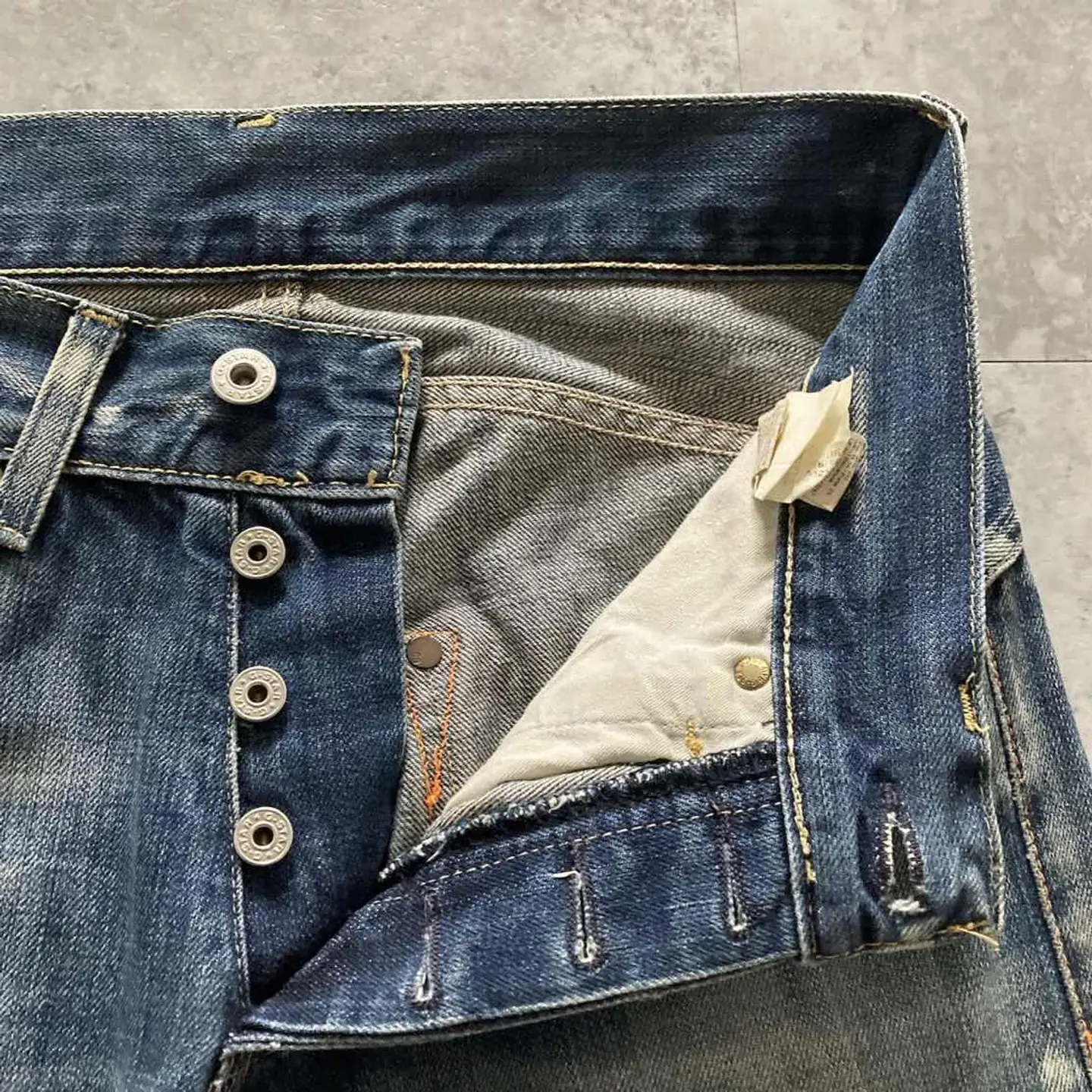 【W30 L34】Levis 501 PREMIUM レザーパッチ ボタンフライ 濃紺 デニムパンツ