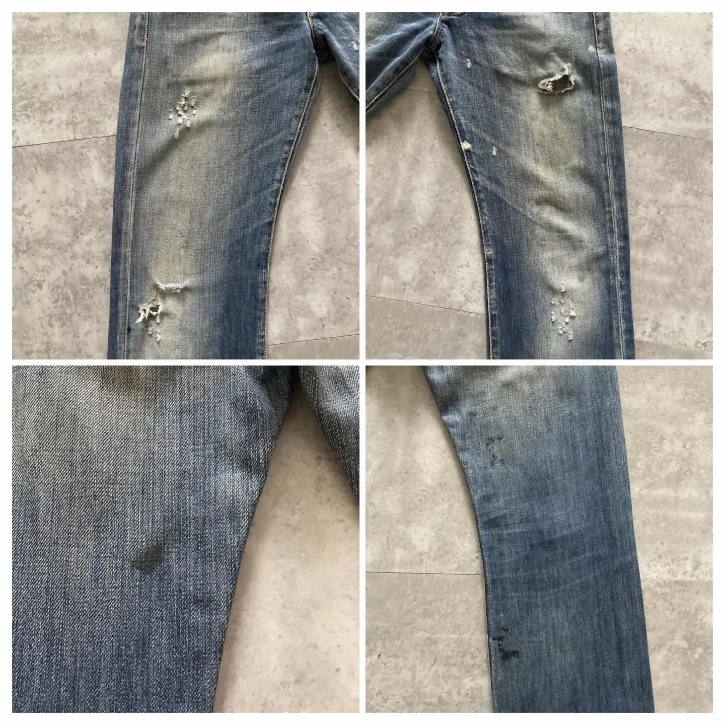 □Size□ 表記→W29 L32 実寸↓ 股上 : 23.5 股下 : 81.5 ワタリ幅 : 28 裾幅 : 21 ウエスト : 39×2 (cm) □Colour□ ・デニム紺 □Material□ ・100%コットン □Condition□ ・前ポケット.太もも.膝.裾に擦れた傷あり ・前ポケット付近にブリーチ加工 ・太もも.膝にペンキ汚れあり □Caution□ ・当店で取り扱っているアイテムは全て「古着」となっております。そのため、多少の擦れやほつれ、色あせや汚れ等が見られる場合がございます。新品同様の完璧なお品物をお求めの方は当店をご利用されないよう宜しくお願いします。 ・購入された商品につきましては、購入日から起算して「72時間以内の発送」とさせて頂きます。お急ぎの場合はオンラインストアの問い合わせフォームよりご連絡ください。可能な限り対応させて頂きます。 ・購入されら商品は基本的に「お客様都合での返品&キャンセル不可」となっております。決済が確定した時点で注文の取り消し等は不可のとなりますので、よくお考えの上購入検討の方をお願い致します。 【A-4923】