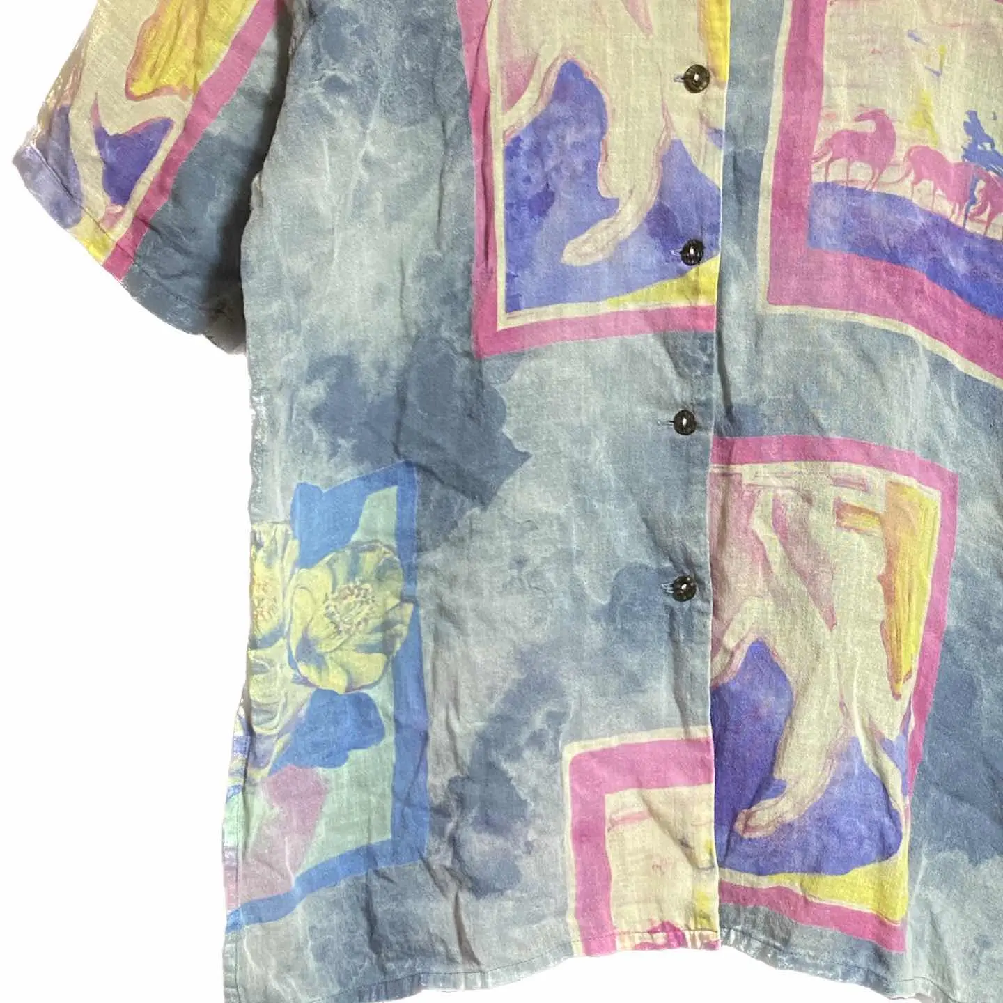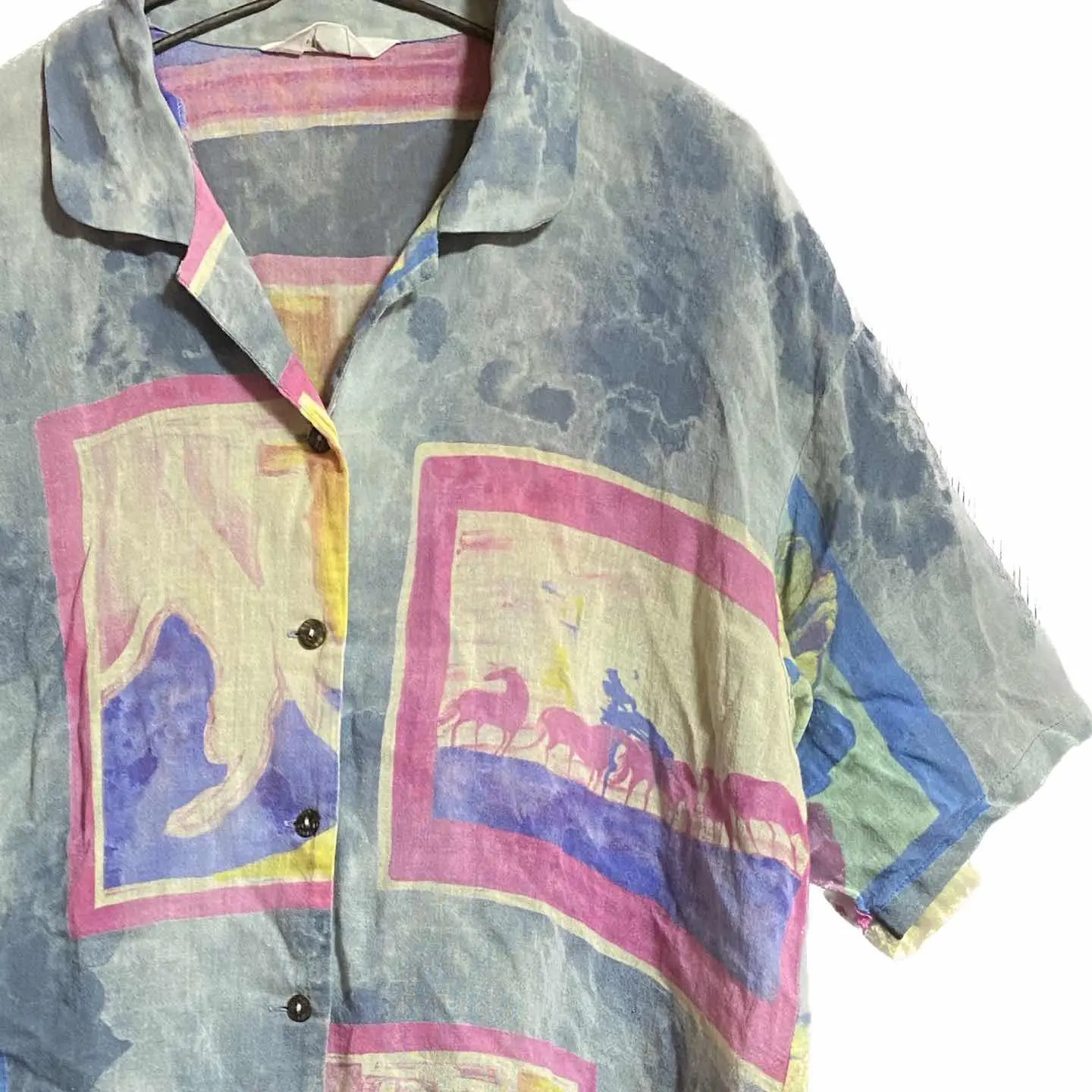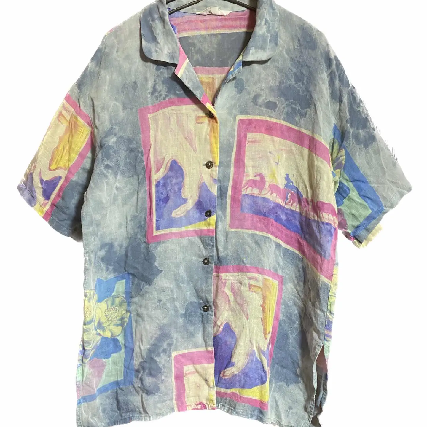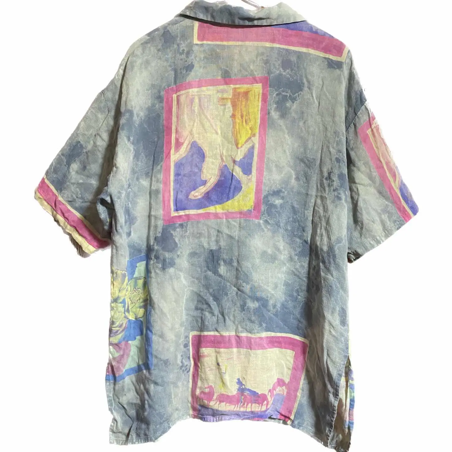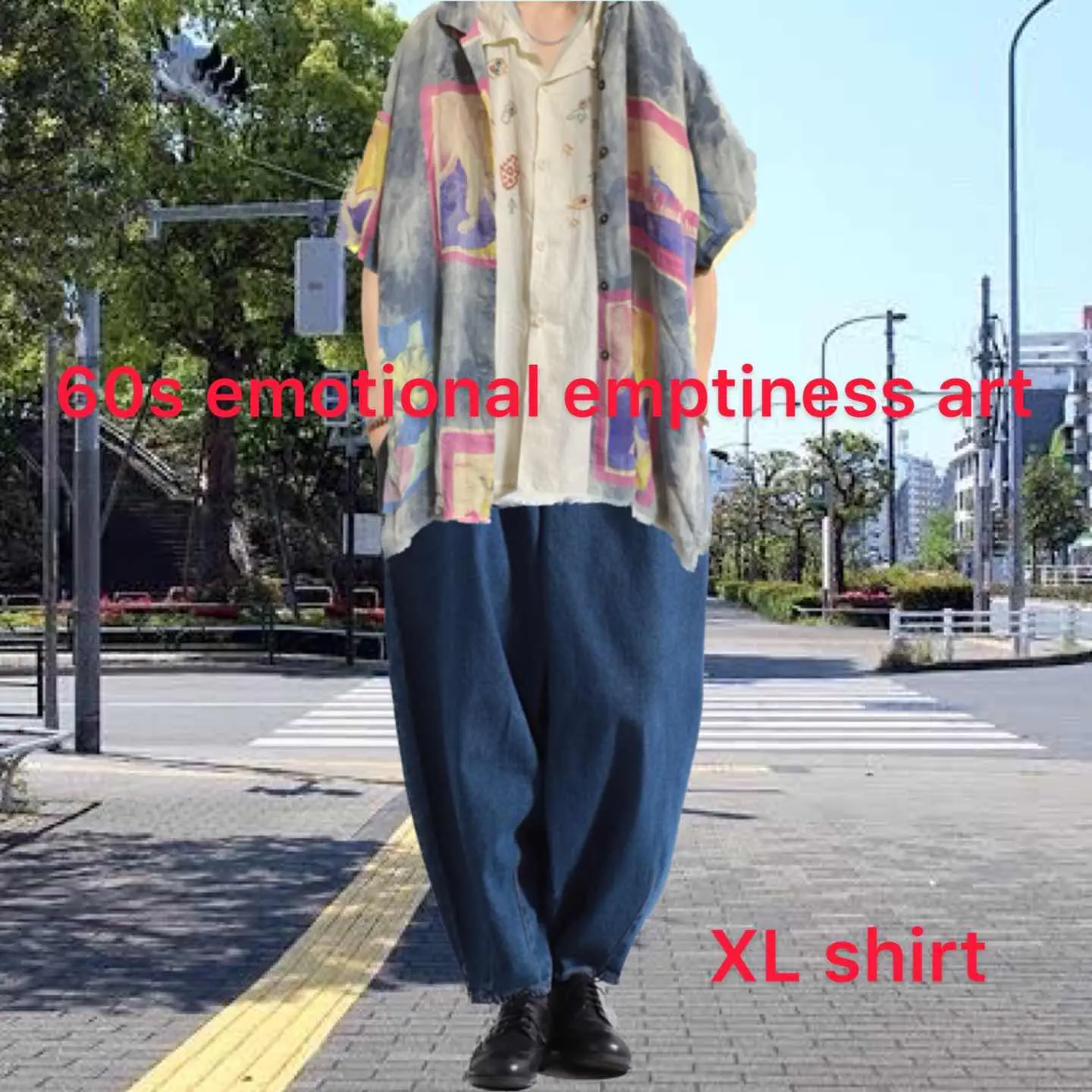 60s vintage 妖艶な雰囲気に、サイジング、デザイン シルエットさらに、素材、着回し力 全てがパーフェクトですが、 やはり特筆ポイントは、見たこともない圧倒的な刹那的な、アート、 emotional 感情的、emptiness空虚のような、 染めの上に、施された、圧倒的なセンスが、光る、スクエアに、様々な、【人生】を描かれたアートまるで、美術館のような、アートは唯一無二、同じものは、このパターンは、作れないですね、確実 one of kindです、 派手とは、違うemotionalさは、柄にして、柄ではない、よって、様々な、ボトムと、相性がよい!! 迷わずゲット下さい!! 【カラー】 実物にかなり近づけましたら 置き画参照。 サイズ9Aだが、XLに入ります、日本企画は身幅60以上は、XLです!! 着丈73 身幅62 肩幅59DS 袖丈40DSの為ハンガーかけて採寸 【material】 ポリノジック80 リネン20 ※ ポリノジック 再生繊維の一種で高級レーヨン(再生セルロース繊維)である。着心地最強に快適、更にリネンまぜてるから、タフネスかつ。すずしい、 【condition】美品といいたいレベルで綺麗 #60年ヴィンテージ #タイダイシャツ #ヴィンテージシャツ #オープンカラーシャツ #個性派 #本質 #激レア好き
