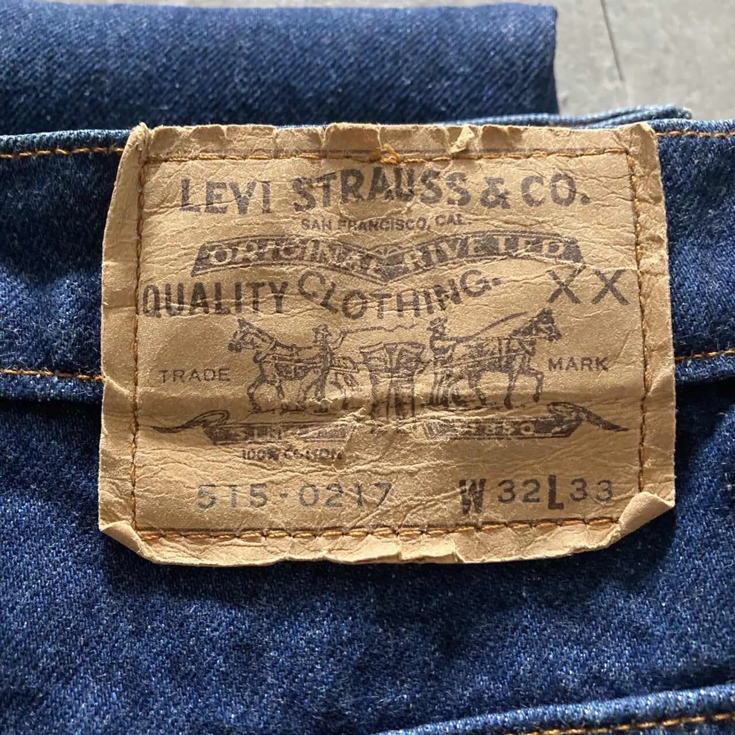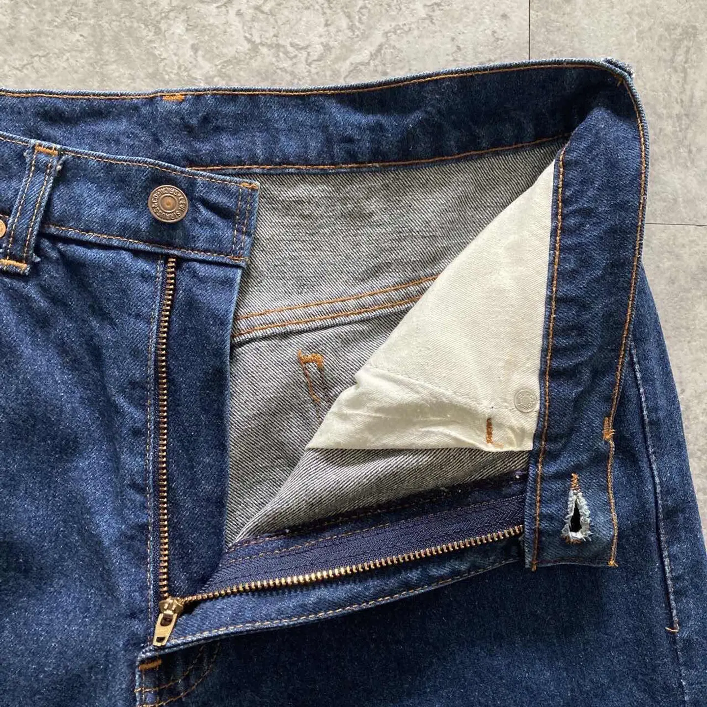 【W30 L34】Levis 501 PREMIUM レザーパッチ ボタンフライ 濃紺 デニムパンツ
