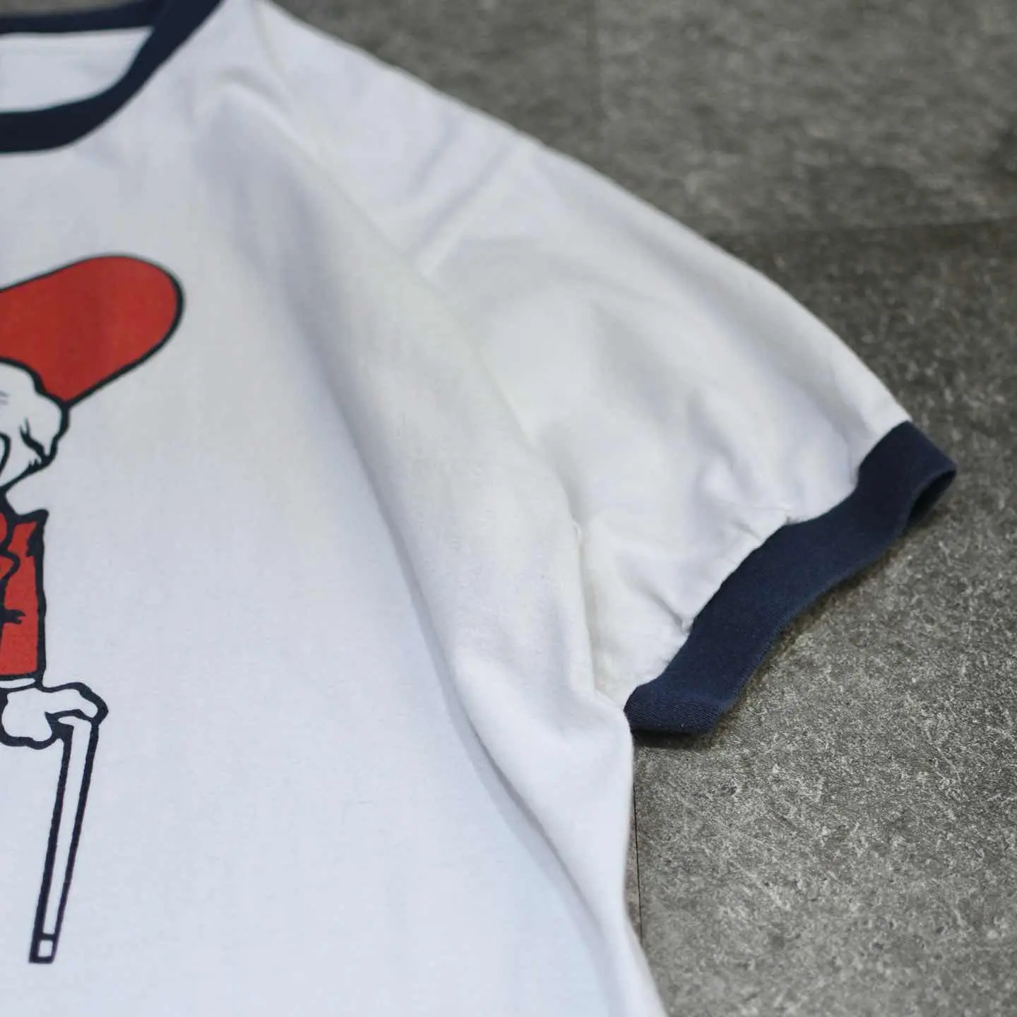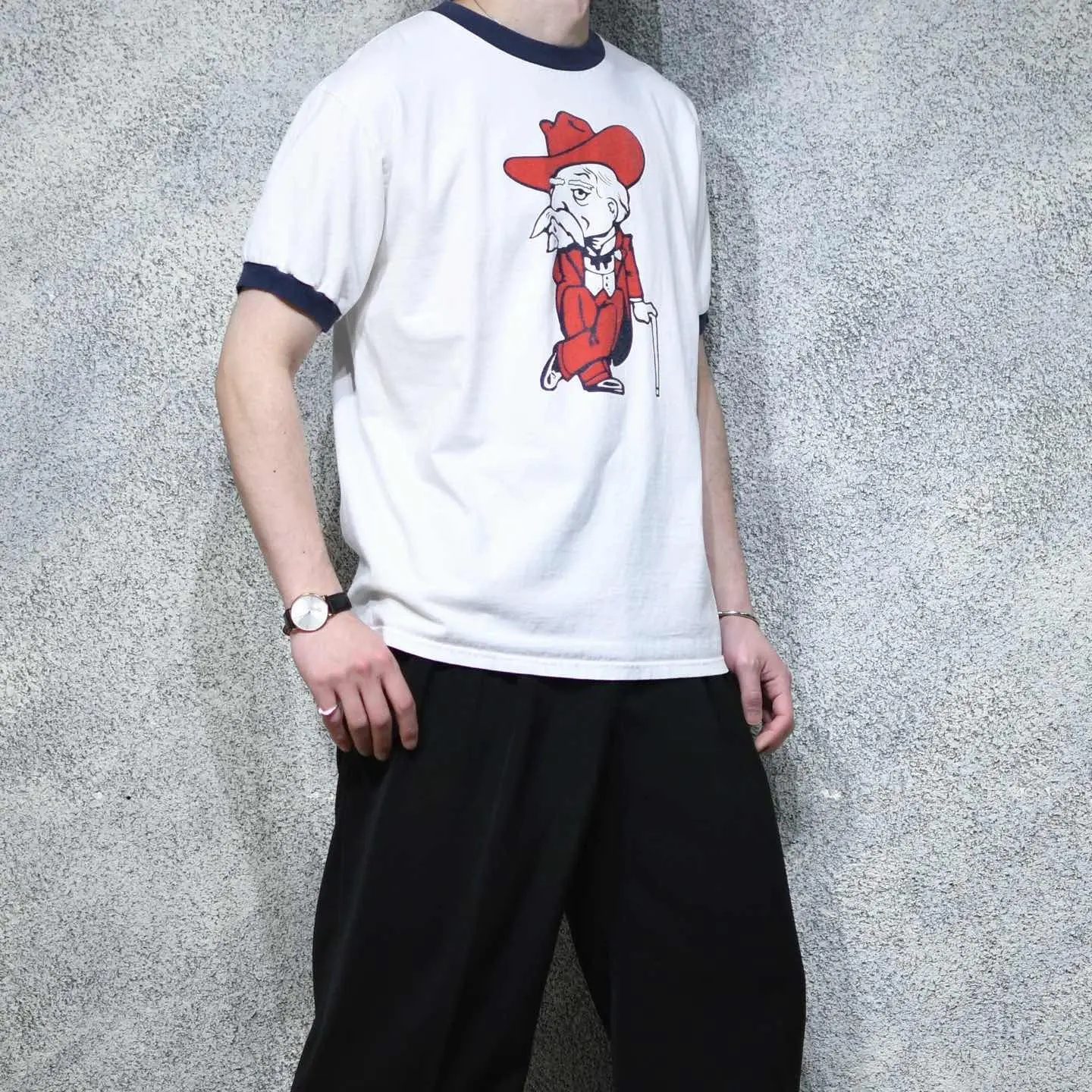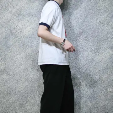 着丈68cm(ダブルステッチ) 肩幅53cm 身幅57cm 袖丈22cm fabric/cotton 着用画像 177cm/64kg 将来、こんなおしゃれなオジになりたいなと。 程よい抜けのあるプリントに惹かれた リンガーtee、このカテゴリーの多くは タイトめな個体が多い中、こちらは大き過ぎずに 程良くゆとりのあるサイズなのが◎ ストレス無く着れるリンガー、パンツは好みで どうぞ。 ※撮影状況により、実物と多少色が異なる場合が ございます。 ※古着を取り扱っているため、気づかない汚れや ほつれ等がある場合がございます。 予めご了承ください。 ※サイズは着用感で選んでおり、表記サイズではございません。 古着 オーバーサイズ old vintage ヴィンテージ used 80's 90's アメリカ古着 ユーロ古着 メンズ レディース POLO RALPH LAUREN Eddie Bauer OLD GAP Eddie Bauer LANDS' END ランズエンド LLBean エルエルビーン オールドギャップ エディーバウアー ラルフローレン ブルックスブラザーズ Brooks Brothers ホワイト 白 半袖Tシャツ などがお好きな方 #vintage #オーバーサイズ #old #used #90s #80s #古着 #ヴィンテージ #アメリカ古着 #ユーロ古着 #古着男子 #古着女子 #LLBean #エルエルビーン #EddieBauer #エディーバウアー #oldgap #オールドギャップ #LANDSEND #ランズエンド #NAUTICA #ノーティカ #ラルフローレン #POLORALPHLAUREN #ブルックスブラザーズ #BrooksBrothers #プリントTシャツ #リンガーTシャツ #半袖Tシャツ #Tシャツ #白Tシャツ
