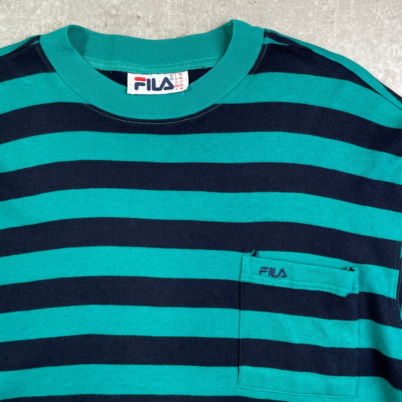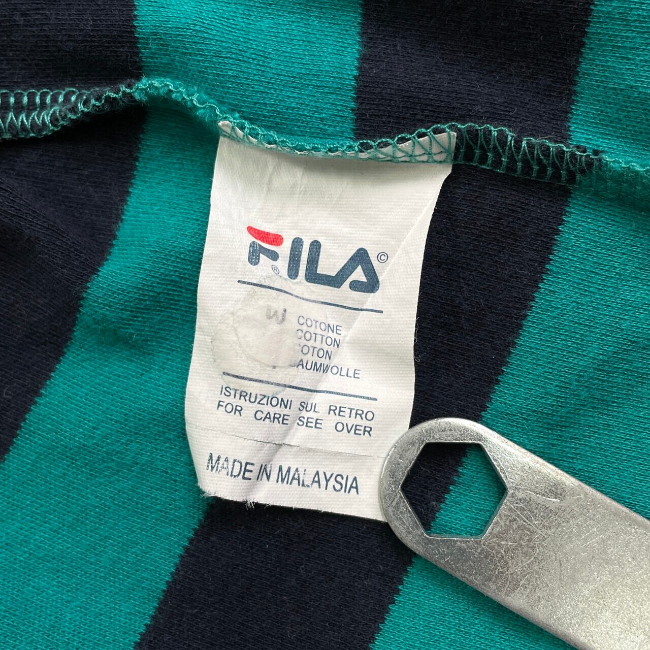 ■90年代 FILA フィラ ボーダーTシャツ 裾シングルステッチ メンズXL相当 古着 90s ヴィンテージ VINTAGE 緑 黒 グリーン ブラック【Tシャツ】/マルチカラー 【ブランド】FILA 【サイズ】表記 USA 36 ※計測値をご確認ください。 着丈…68.5 身幅…58 肩幅…61 袖丈…25 【生産国】マレーシア製 【素材】コットン100% 【状態】多少の使用感は御座いますが、目立ったダメージや汚れは御座いません。 画像にてご確認ください。 【c250531053】 ※古着は洗濯、検品などのケアを行っております。(新品・デッドストックは洗濯していません。) ※モニターの発色により実物と異なる場合がございます。予めご了承ください。 ※ 海外直輸入USED品になります。