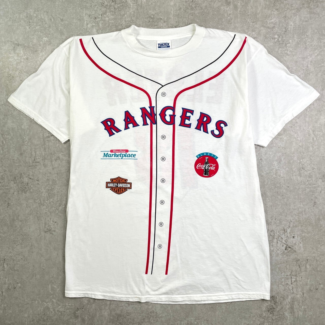 ■00年代 MLB TEXAS RANGERS KEVIN ELSTER プリント Tシャツ ユニフォームプリント メンズXL 古着 00s ヴィンテージ VINTAGE Y2K メジャーリーグ テキサス・レンジャーズ ケビン・エルスター Harley-Davidson ハーレーダビッドソン Coca-Cola コカ・コーラ シングルステッチ 白【Tシャツ】/ホワイト 【ブランド】TULTEX 【サイズ】表記 X-LARGE ※計測値をご確認ください。 着丈…79 身幅…62 肩幅…58 袖丈…22.5 【生産国】メキシコ製 【素材】コットン100% 【状態】首リブに細かい汚れ等の使用感がございます。 画像にてご確認ください。 【c250531005】 ※古着は洗濯、検品などのケアを行っております。(新品・デッドストックは洗濯していません。) ※モニターの発色により実物と異なる場合がございます。予めご了承ください。 ※ 海外直輸入USED品になります。