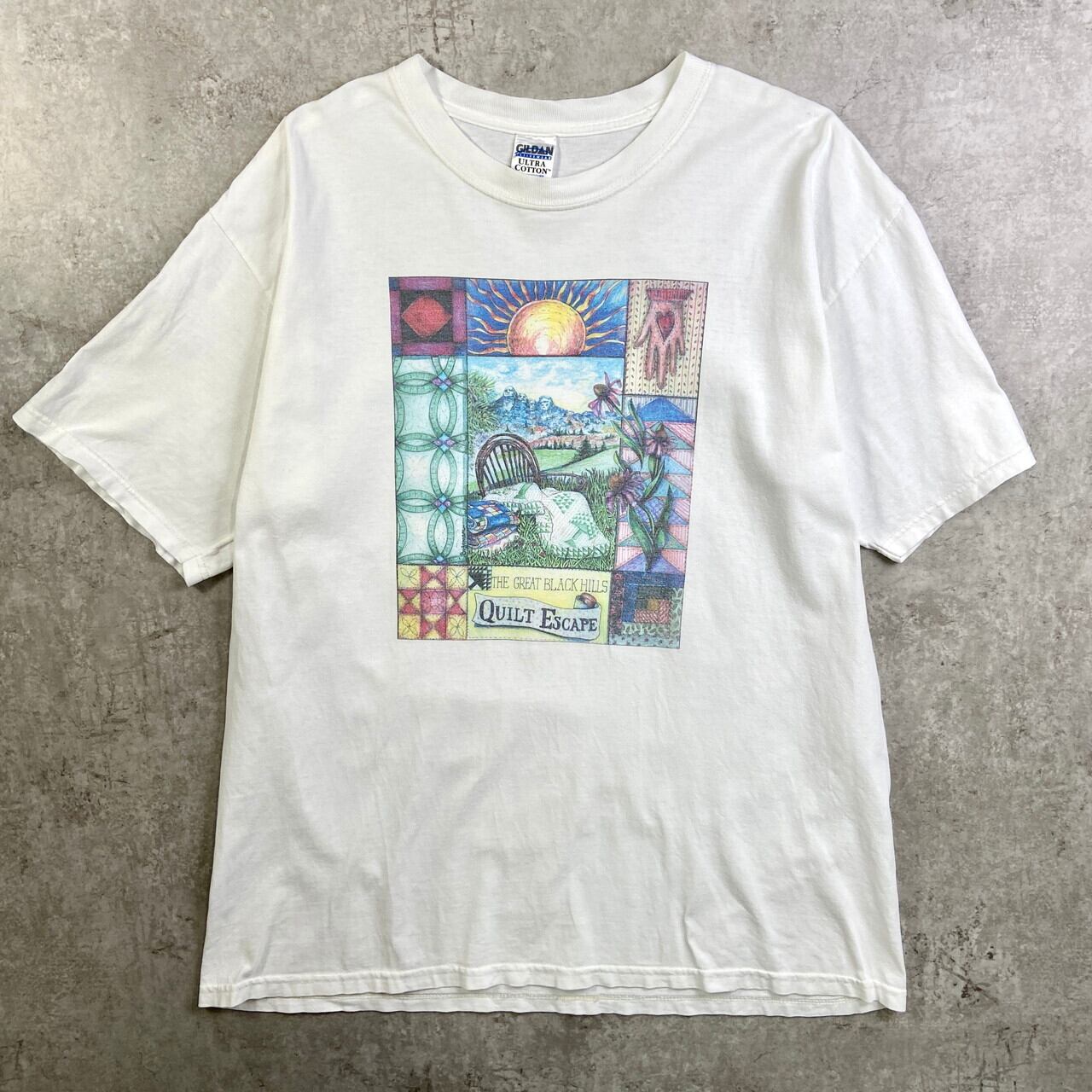 ■00年代 THE GREAT BLACK HILLS QUILT ESCAPE スーベニア アートプリントTシャツ メンズXL 古着 00s VINTAGE ヴィンテージ Y2K 白【Tシャツ】/ホワイト 【ブランド】GILDAN ギルダン 【サイズ】表記 XL ※計測値をご確認ください。 着丈...75.5 身幅…60.5 肩幅…60 袖丈…24.5 【生産国】ホンジュラス製 【素材】コットン100% 【状態】左肩に薄汚れ、首後ろに小穴等の使用感がございます。 画像にてご確認ください。 【c250530003】 ※古着は洗濯、検品などのケアを行っております。(新品・デッドストックは洗濯していません。) ※モニターの発色により実物と異なる場合がございます。予めご了承ください。 ※ 海外直輸入USED品になります。