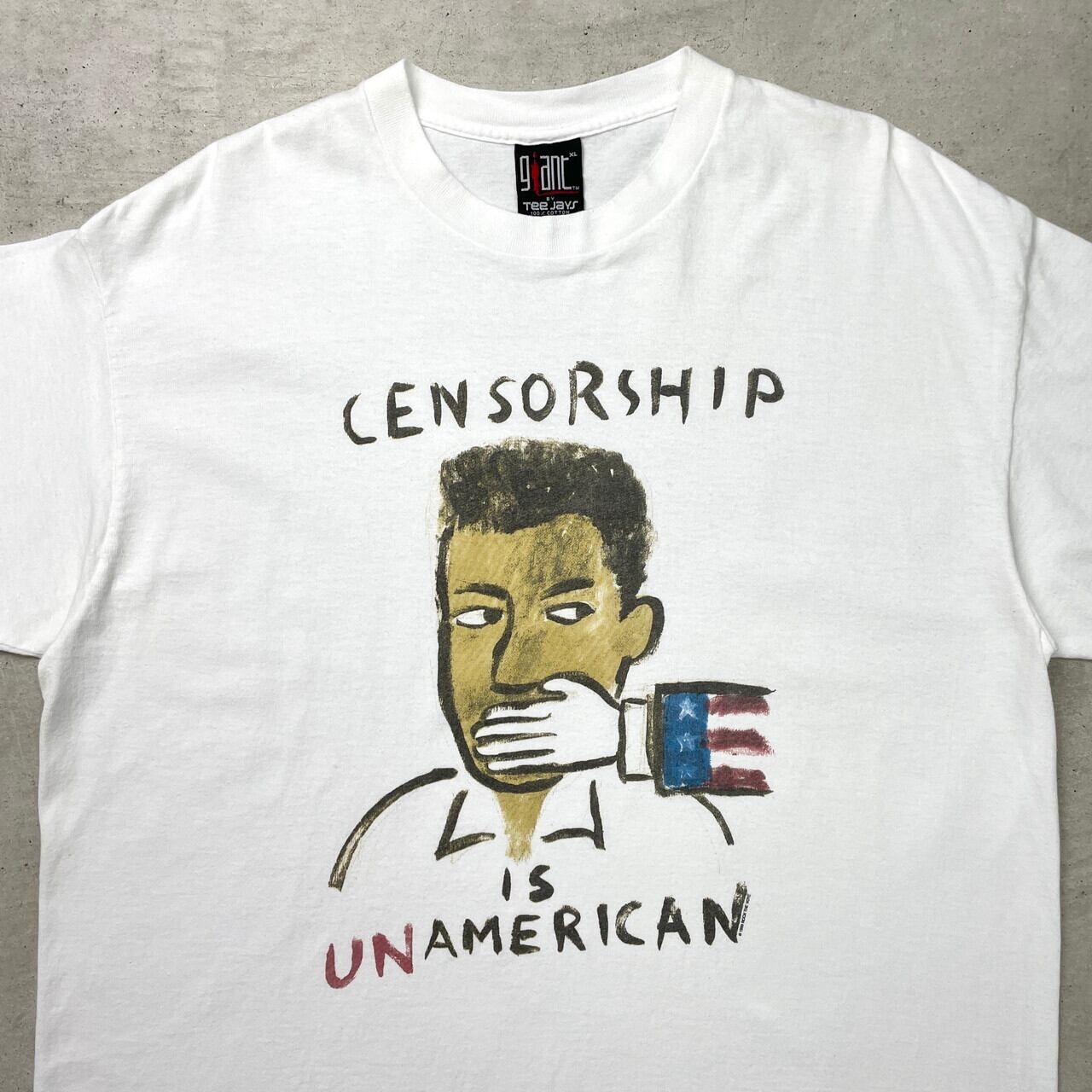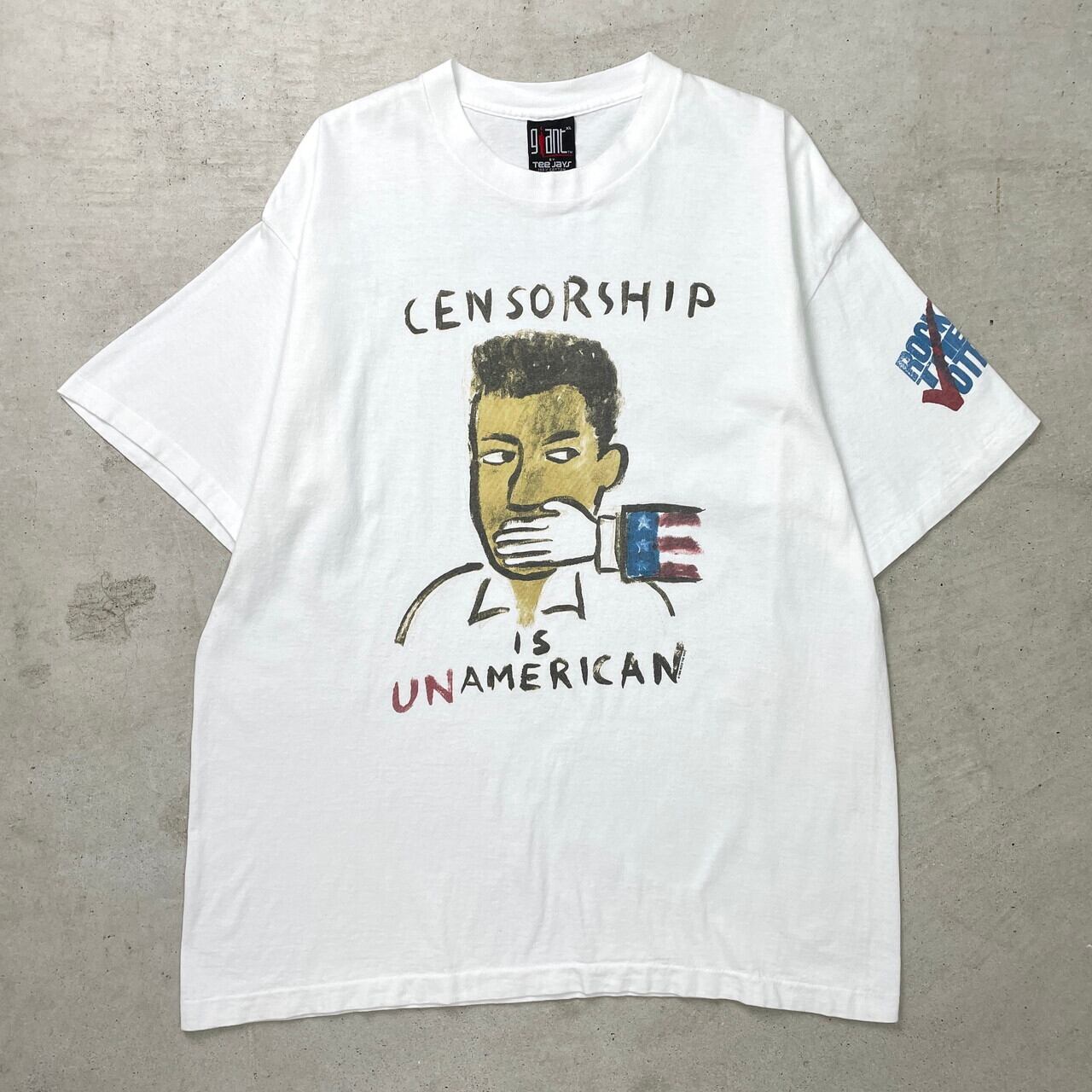 ■90年代 MTV ROCK THE VOTE ''CENSORSHIP IS UNAMERICAN'' アートプリントTシャツ メンズXL 古着 90s VINTAGE ヴィンテージ シングルステッチ 白【Tシャツ】/ホワイト ◎Josh GosfieldがMTV Rock The Voteと制作した'CENSORSHIP IS UNAMERICAN''Tシャツ 政治的なメッセージ性もさることながら、ラッパーの着用やsupremeのサンプリング等ストリートシーンとも親和性の高いグラフィックTです 【ブランド】giant ジャイアント 【サイズ】表記 XL ※計測値をご確認ください。 着丈…73.5 身幅…60 肩幅…55.5 袖丈…22 【生産国】USA製 【素材】コットン100% 【状態】多少の使用感はございますが、 目立った汚れやダメージ等は無くまだまだ長く愛用していただけます。 画像にてご確認ください。 【c250528023】 ※古着は洗濯、検品などのケアを行っております。(新品・デッドストックは洗濯していません。) ※モニターの発色により実物と異なる場合がございます。予めご了承ください。 ※ 海外直輸入USED品になります。