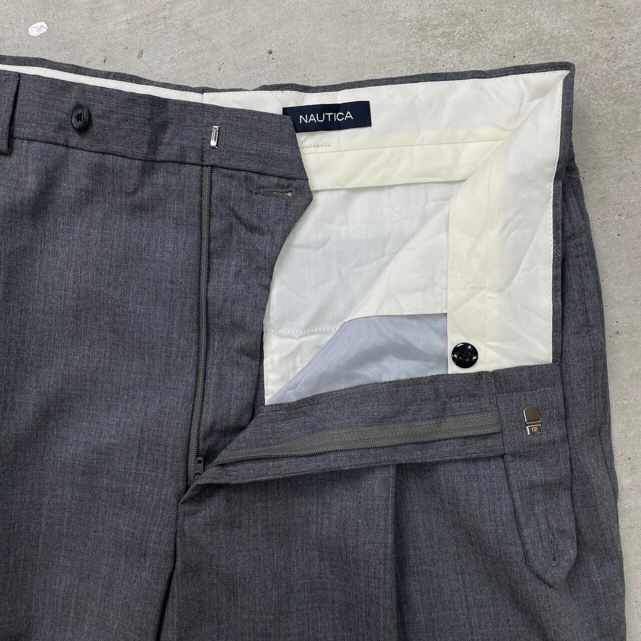 ■NAUTICA ノーティカ ワイドスラックス パンツ 2タック メンズW35 古着 灰色【スラックス,スタプレ】/グレー ◎サラッとした薄手のスーツ生地です。 【ブランド】 NAUTICA ノーティカ 【サイズ】表記 42R W36(実寸約W35 L29) ※計測値をご確認ください。 ウエスト(平置き×2)…88 ワタリ幅…36.5 股上…32 股下…74 裾幅…23 【生産国】インド製 【素材】ウール100% 【状態】多少の使用感はございますが、 目立った汚れやダメージ等は無くまだまだ長く愛用していただけます。 画像にてご確認ください。 【c250528009】 ※古着は洗濯、検品などのケアを行っております。(新品・デッドストックは洗濯していません。) ※モニターの発色により実物と異なる場合がございます。予めご了承ください。 ※ 海外直輸入USED品になります。