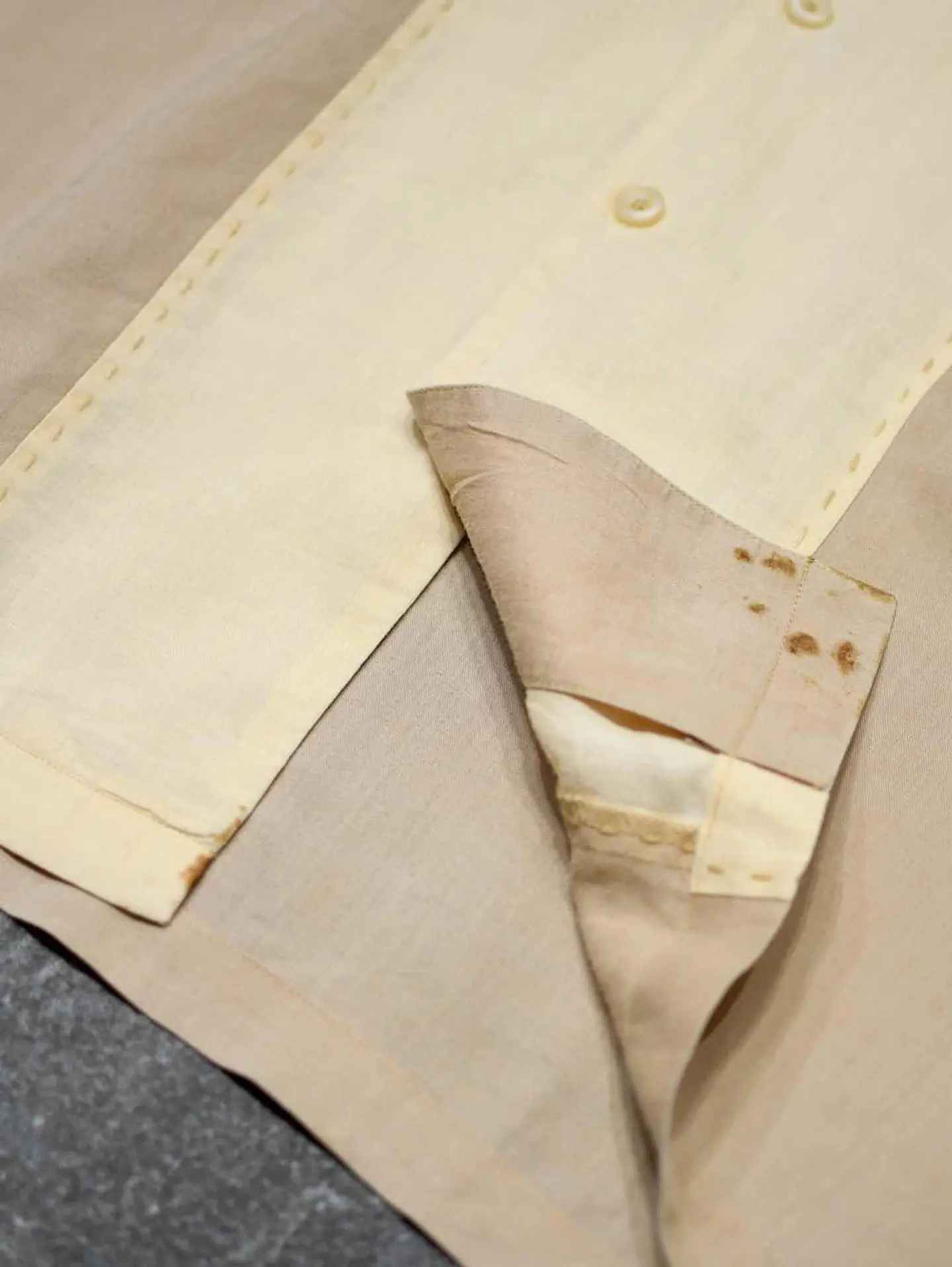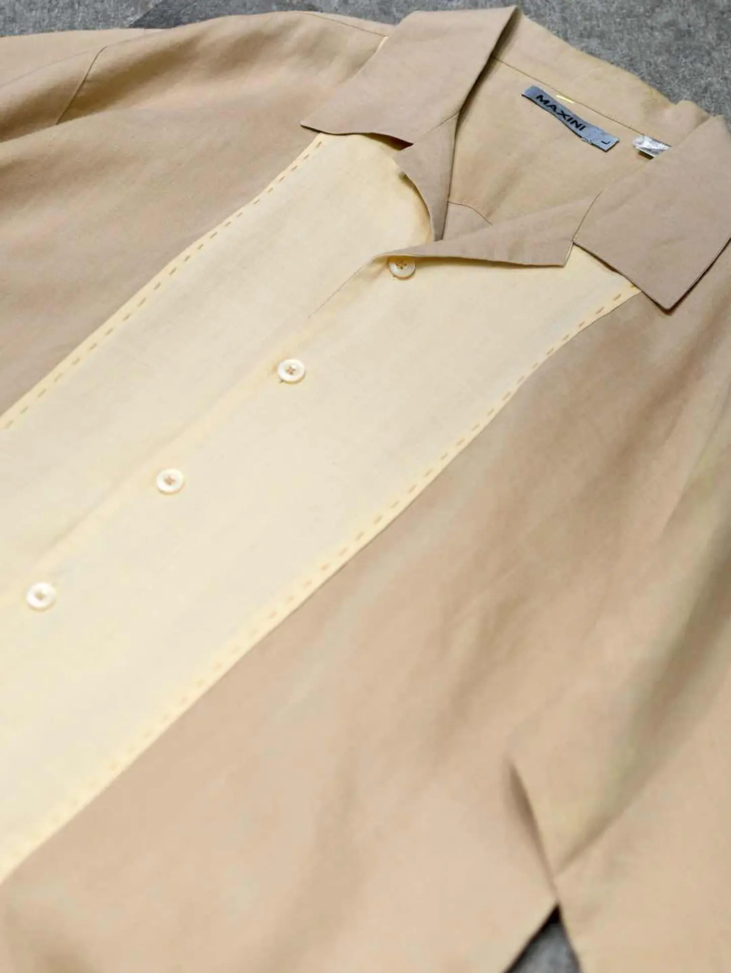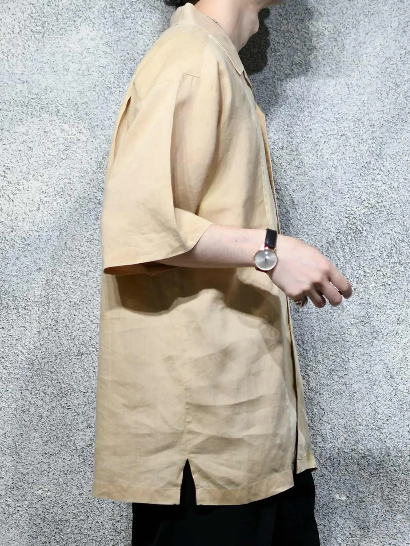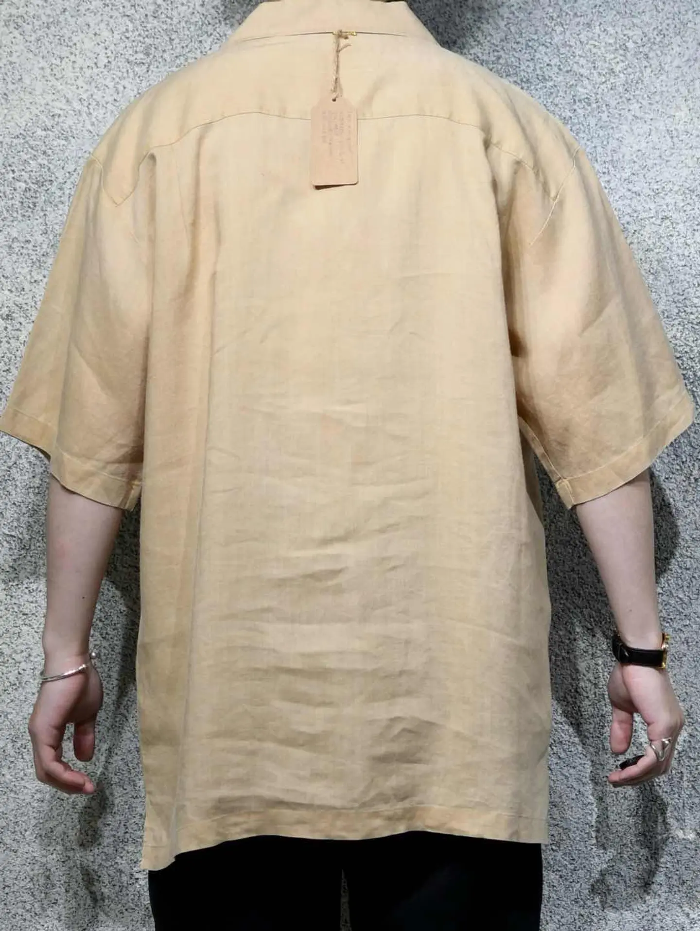 着丈81cm 肩幅54cm 身幅63cm 袖丈30cm fabric/Linen 着用画像 177cm/64kg リネンシャツといえば、アイボリー色のイメージが ありますが、こちらはそれよりも濃いベージュ色と アイボリー色との切り替え。 色がついたリネンシャツ、黒やグレーなんかも 時折見かけますが、あえてこの色でとデザインした 作り手の拘りが感じた1着。 考えてみれば無いよなと。 ぷるっとしたリネン生地に落ち着きのあるカラー。 大人びた雰囲気を纏いたい方へ、おすすめです。 ※内側に汚れあり。 ※撮影状況により、実物と多少色が異なる場合が ございます。 ※古着を取り扱っているため、気づかない汚れや ほつれ等がある場合がございます。 予めご了承ください。 ※サイズは着用感で選んでおり、表記サイズではございません。 古着 オーバーサイズ old vintage ヴィンテージ used 80's 90's アメリカ古着 ユーロ古着 メンズ レディース POLO RALPH LAUREN Eddie Bauer OLD GAP Eddie Bauer LANDS' END ランズエンド LLBean エルエルビーン オールドギャップ エディーバウアー ラルフローレン ブルックスブラザーズ Brooks Brothers ベージュ 生成り オープンカラーシャツ 開襟シャツ などがお好きな方 #vintage #オーバーサイズ #old #used #90s #80s #古着 #ヴィンテージ #アメリカ古着 #ユーロ古着 #古着男子 #古着女子 #LLBean #エルエルビーン #EddieBauer #エディーバウアー #oldgap #オールドギャップ #LANDSEND #ランズエンド #NAUTICA #ノーティカ #ラルフローレン #POLORALPHLAUREN #ブルックスブラザーズ #BrooksBrothers #オープンカラーシャツ #開襟シャツ #デザインシャツ #半袖シャツ #リネンシャツ #切り替えシャツ