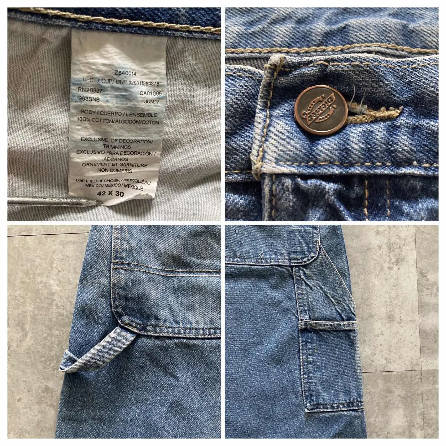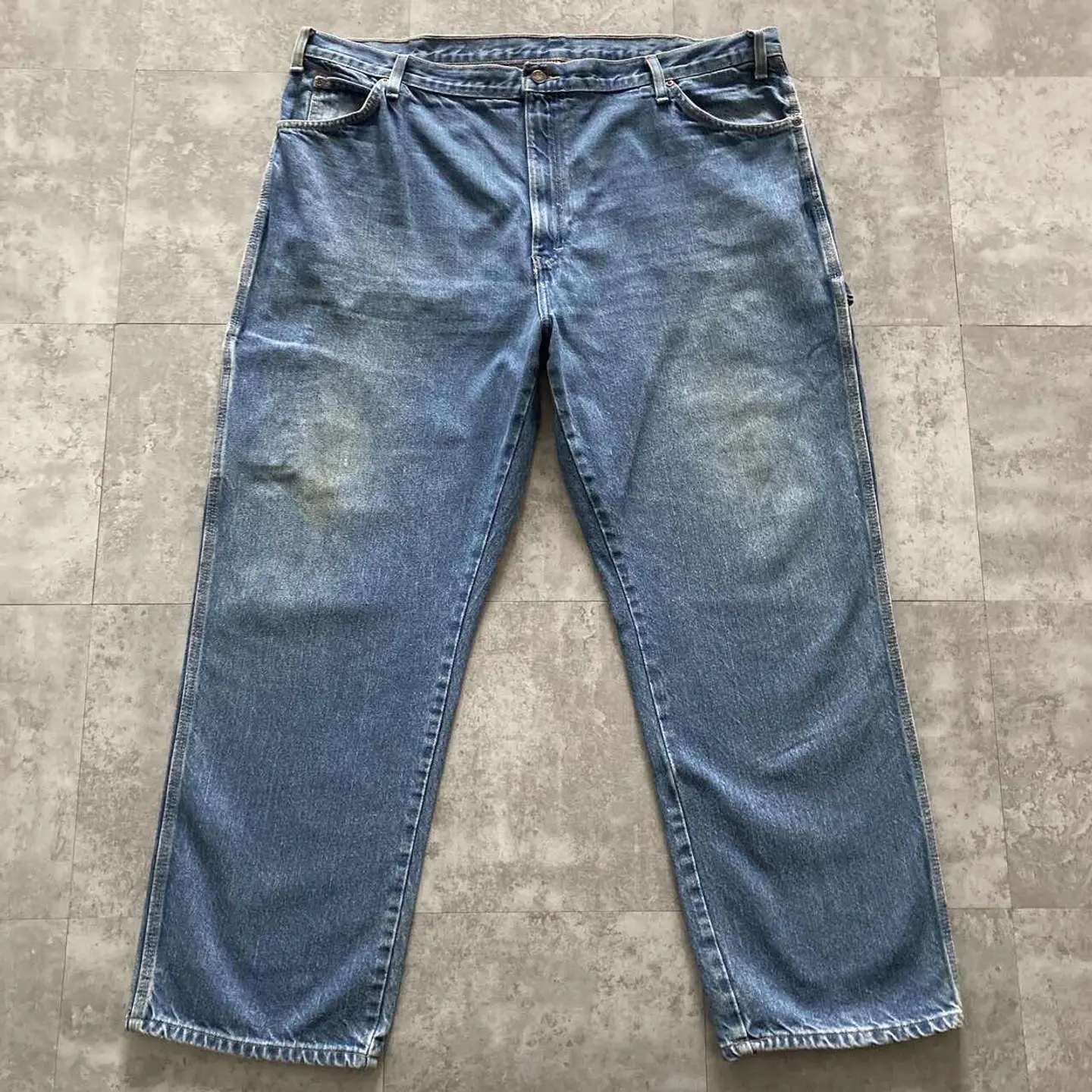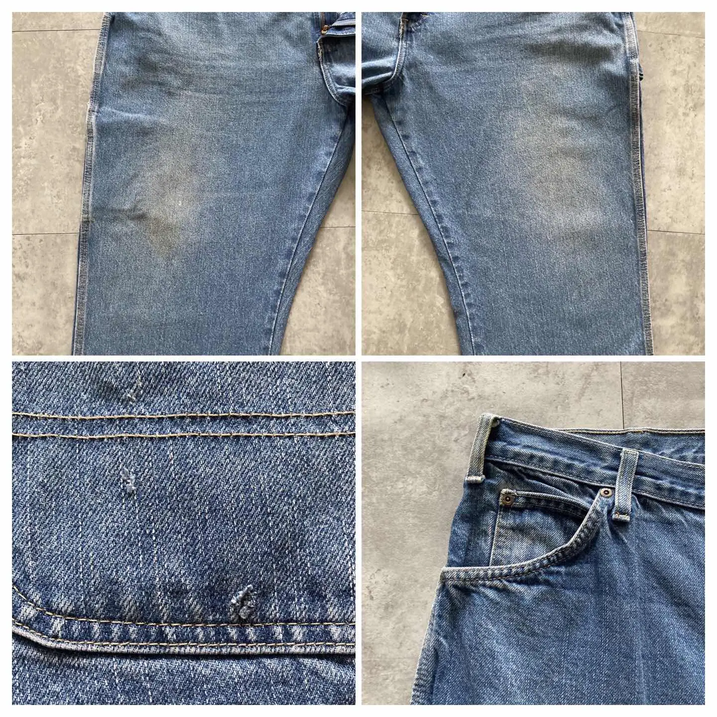 □Size□ 表記→42×30 実寸↓ 股上 : 34 股下 : 75 ワタリ幅 : 39.5 裾幅 : 23.5 ウエスト : 56.5×2 (cm) □Colour□ ・デニム紺 □Material□ ・100%コットン □Condition□ ・膝.太ももに汚れあり ・後ポケットに擦れた傷あり □Caution□ ・当店で取り扱っているアイテムは全て「古着」となっております。そのため、多少の擦れやほつれ、色あせや汚れ等が見られる場合がございます。新品同様の完璧なお品物をお求めの方は当店をご利用されないよう宜しくお願いします。 ・購入された商品につきましては、購入日から起算して「72時間以内の発送」とさせて頂きます。お急ぎの場合はオンラインストアの問い合わせフォームよりご連絡ください。可能な限り対応させて頂きます。 ・購入されら商品は基本的に「お客様都合での返品&キャンセル不可」となっております。決済が確定した時点で注文の取り消し等は不可のとなりますので、よくお考えの上購入検討の方をお願い致します。 【A-5459】