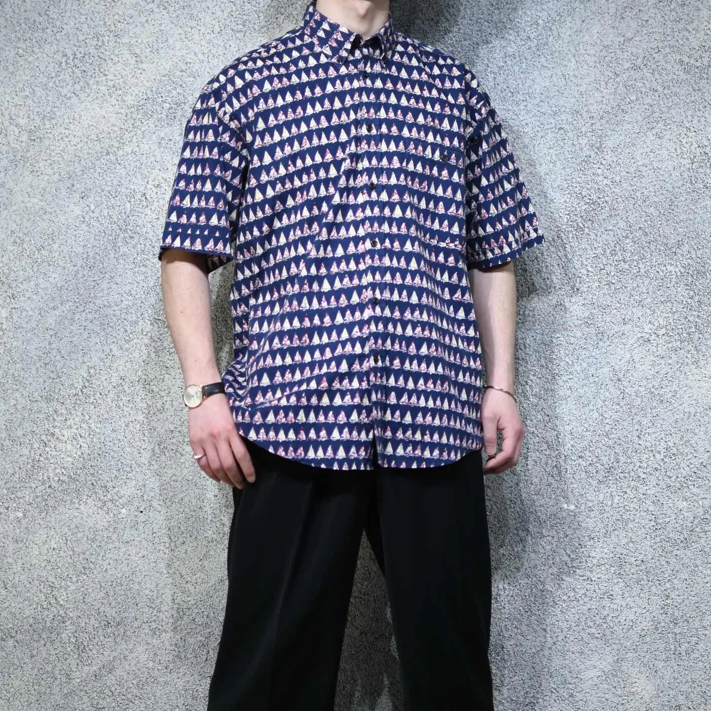 着丈74cm(前)82cm(後) 肩幅54cm 身幅63cm 袖丈27cm fabric/cotton 着用画像 177cm/64kg 赤、赤、赤、黄色、黄色、赤、黄色....... 2色のヨットが規則正しく、されど順不同に並んだ 半袖シャツ。 現時点で評価されたアイテムは、間違いなく 良いアイテムであることは間違いないですが、 そうじゃなくて、自分が思う良いアイテムとして 評価出来た1着。 程よく面白い古着。 ※撮影状況により、実物と多少色が異なる場合が ございます。 ※古着を取り扱っているため、気づかない汚れや ほつれ等がある場合がございます。 予めご了承ください。 ※サイズは着用感で選んでおり、表記サイズではございません。 古着 オーバーサイズ old vintage ヴィンテージ used 80's 90's アメリカ古着 ユーロ古着 メンズ レディース POLO RALPH LAUREN Eddie Bauer OLD GAP Eddie Bauer LANDS' END ランズエンド LLBean エルエルビーン オールドギャップ エディーバウアー ラルフローレン ブルックスブラザーズ Brooks Brothers などがお好きな方 #vintage #オーバーサイズ #old #used #90s #80s #古着 #ヴィンテージ #アメリカ古着 #ユーロ古着 #古着男子 #古着女子 #LLBean #エルエルビーン #EddieBauer #エディーバウアー #oldgap #オールドギャップ #LANDSEND #ランズエンド #NAUTICA #ノーティカ #ラルフローレン #POLORALPHLAUREN #ブルックスブラザーズ #BrooksBrothers #半袖シャツ #柄シャツ #総柄シャツ