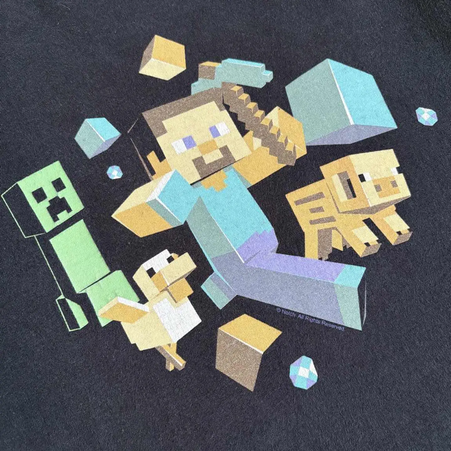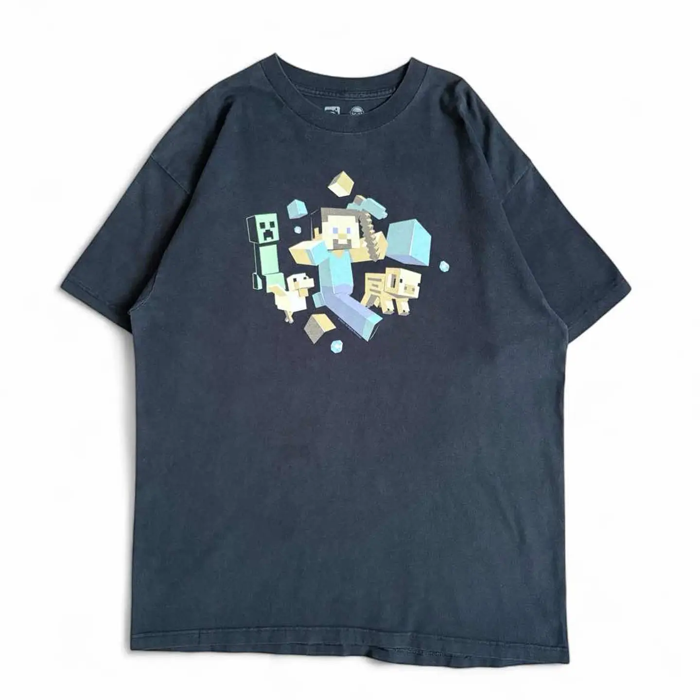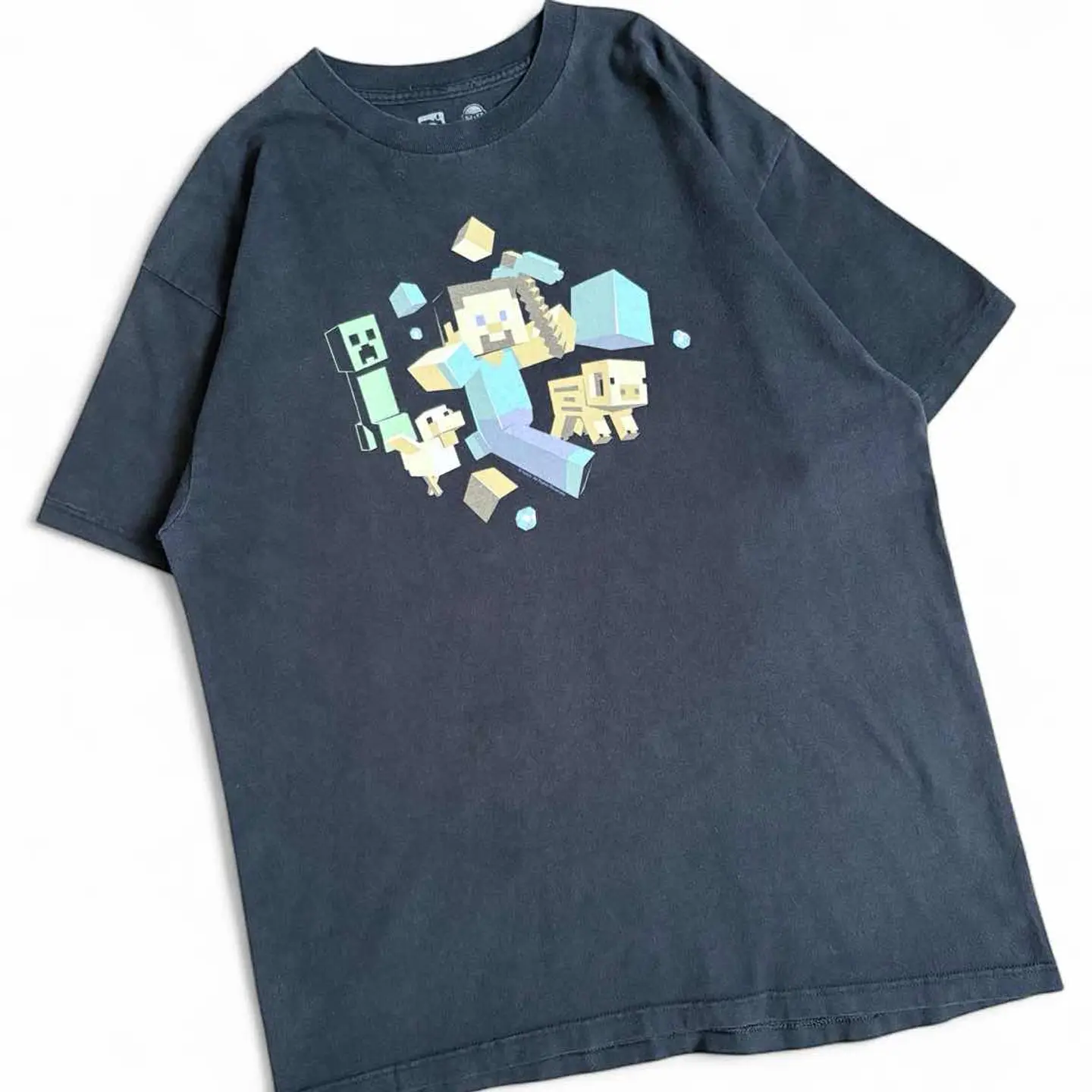○商品説明 Minecraft スティーブ、クリーパー、ブタ、トリが デザインされた一枚。 MinecraftのTシャツも色んな種類ありますが こちらは良いデザインです。 コピーライトもしっかり入っています。 まわりにダイヤモンドがデザインされているもの◎ 気になった方は是非。 ○サイズ 表記XL 平置き ・肩幅55cm ・身幅57cm ・袖丈20.5cm ・着丈72.5cm ○商品の状態B A:使用感がほとんどなく、汚れやシミもなし B:多少使用感はあるが、汚れやシミも少ない C:使用感があり、汚れやシミがある D:使用感があり、大きな汚れや破れあり ○色 ブラック #minecraft#マインクラフト#Tシャツ