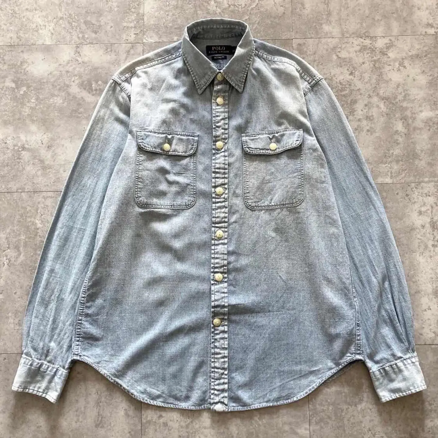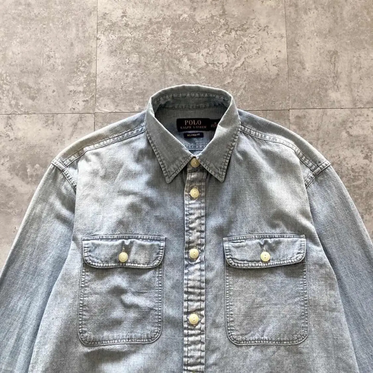 【size XL】RALPH LAUREN ワンポイントロゴ刺繍 ビッグサイズ デニムシャツ