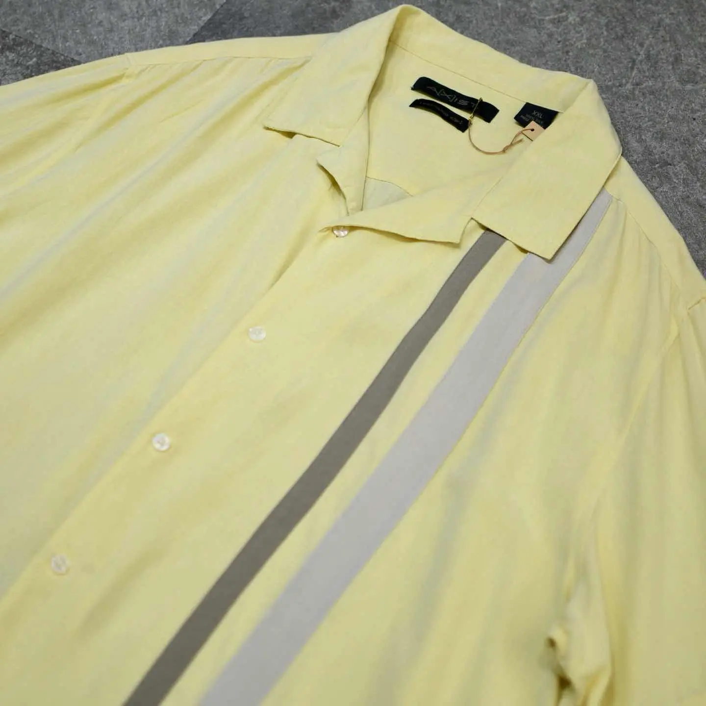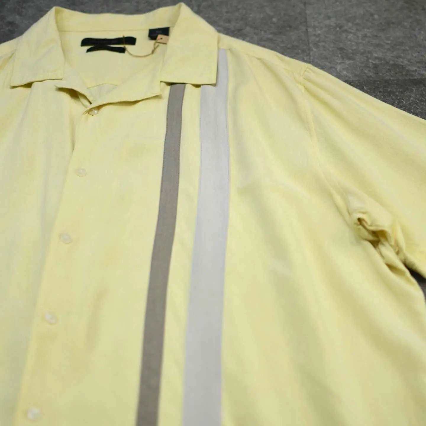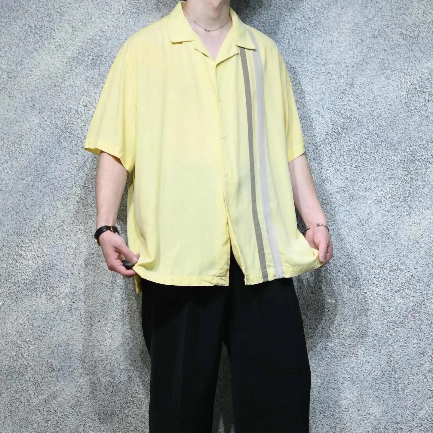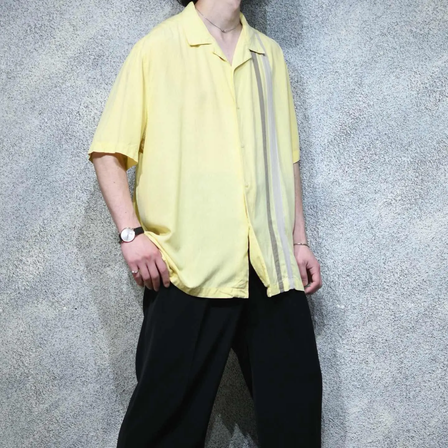 着丈77cm 肩幅53cm 身幅73cm 袖丈29cm fabric/silk 着用画像 177cm/64kg 光沢のある薄手のシルク生地ではなく、 しっとりとした、光沢の無いシルク生地で 織られた1着。 優しい雰囲気のある色合いで構成された 切り替えのデザイン、首元は夏らしくすっきりした オープンカラー。 薄手の季節に自然と手が伸びる、 明るめのカラーですが、コーデに馴染みやすい こんな色合いでスタイリングを組んでみては どうでしょう。 肌馴染みの良さ、格別です。 ※撮影状況により、実物と多少色が異なる場合が ございます。 ※古着を取り扱っているため、気づかない汚れや ほつれ等がある場合がございます。 予めご了承ください。 ※サイズは着用感で選んでおり、表記サイズではございません。 古着 オーバーサイズ old vintage ヴィンテージ used 80's 90's アメリカ古着 ユーロ古着 メンズ レディース POLO RALPH LAUREN Eddie Bauer OLD GAP Eddie Bauer LANDS' END ランズエンド LLBean エルエルビーン オールドギャップ エディーバウアー ラルフローレン ブルックスブラザーズ Brooks Brothers 黄色 オープンカラーシャツ 開襟シャツ などがお好きな方 #vintage #オーバーサイズ #old #used #90s #80s #古着 #ヴィンテージ #アメリカ古着 #ユーロ古着 #古着男子 #古着女子 #LLBean #エルエルビーン #EddieBauer #エディーバウアー #oldgap #オールドギャップ #LANDSEND #ランズエンド #NAUTICA #ノーティカ #ラルフローレン #POLORALPHLAUREN #ブルックスブラザーズ #BrooksBrothers #半袖シャツ #AXIST #切り替えシャツ #デザインシャツ #シルクシャツ #オープンカラーシャツ #開襟シャツ