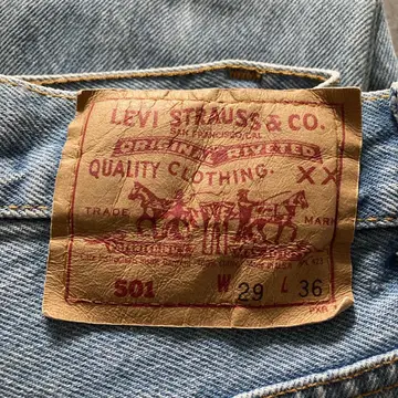 【W30 L34】Levis 501 PREMIUM レザーパッチ ボタンフライ 濃紺 デニムパンツ