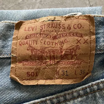 【W30 L34】Levis 501 PREMIUM レザーパッチ ボタンフライ 濃紺 デニムパンツ