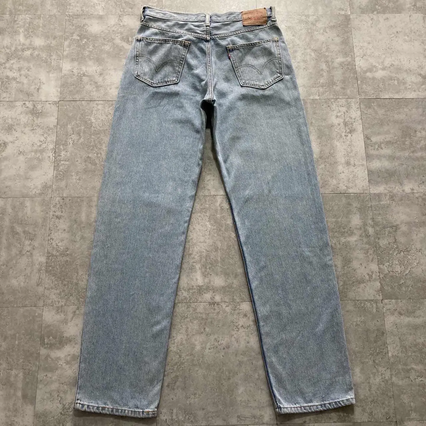 【W30 L34】Levis 501 PREMIUM レザーパッチ ボタンフライ 濃紺 デニムパンツ