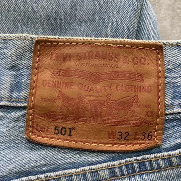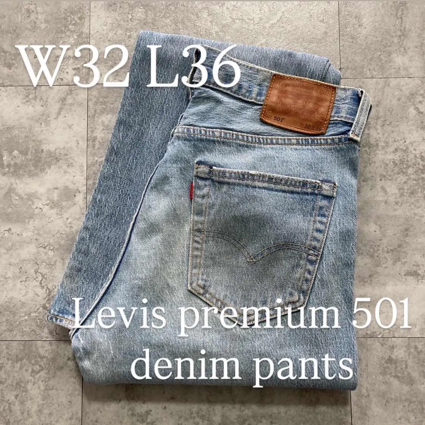 【W30 L34】Levis 501 PREMIUM レザーパッチ ボタンフライ 濃紺 デニムパンツ