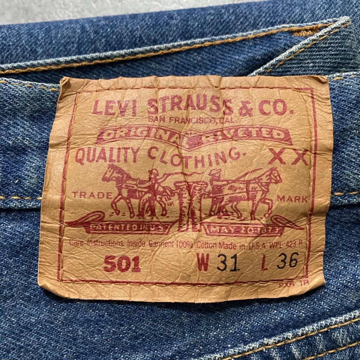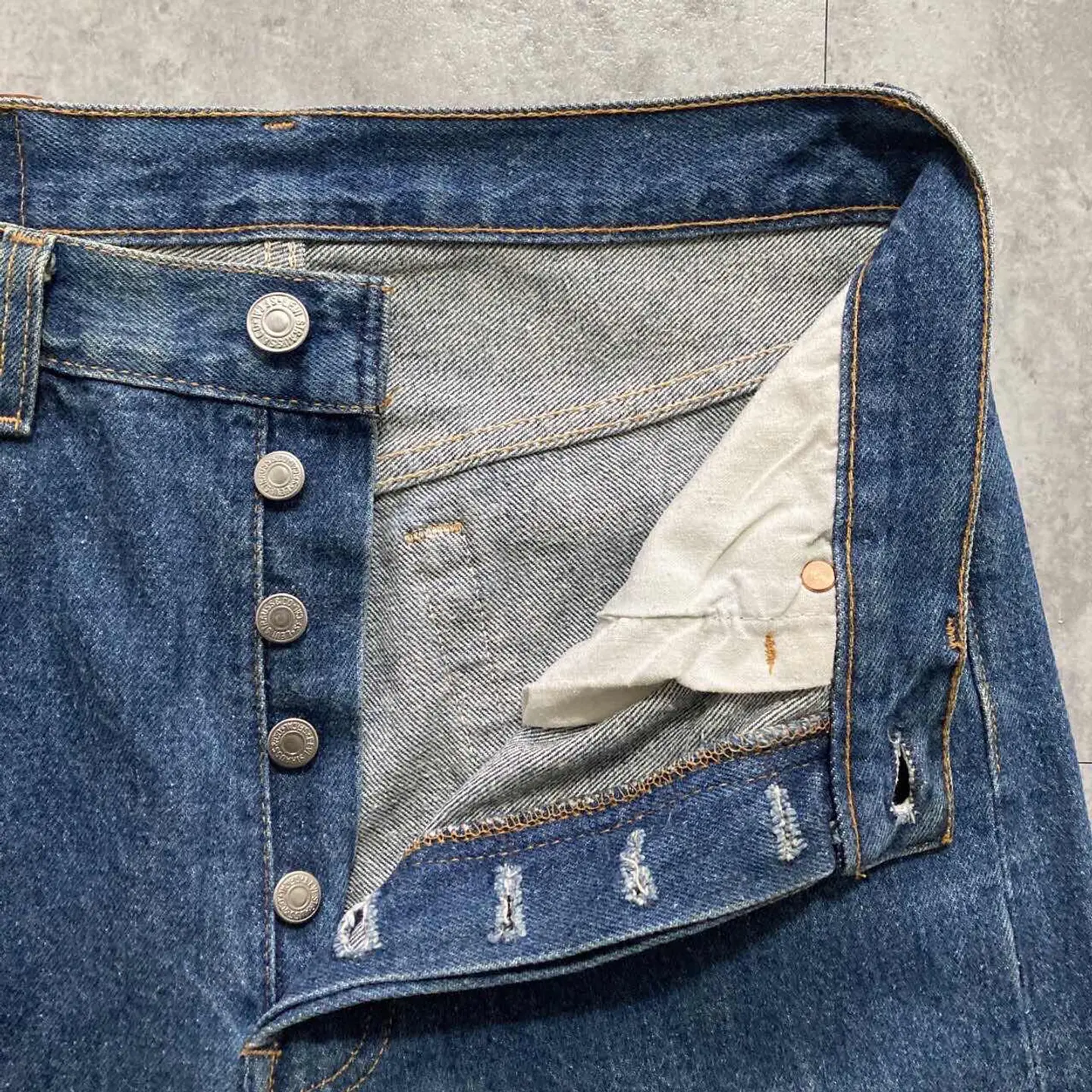 【W30 L34】Levis 501 PREMIUM レザーパッチ ボタンフライ 濃紺 デニムパンツ