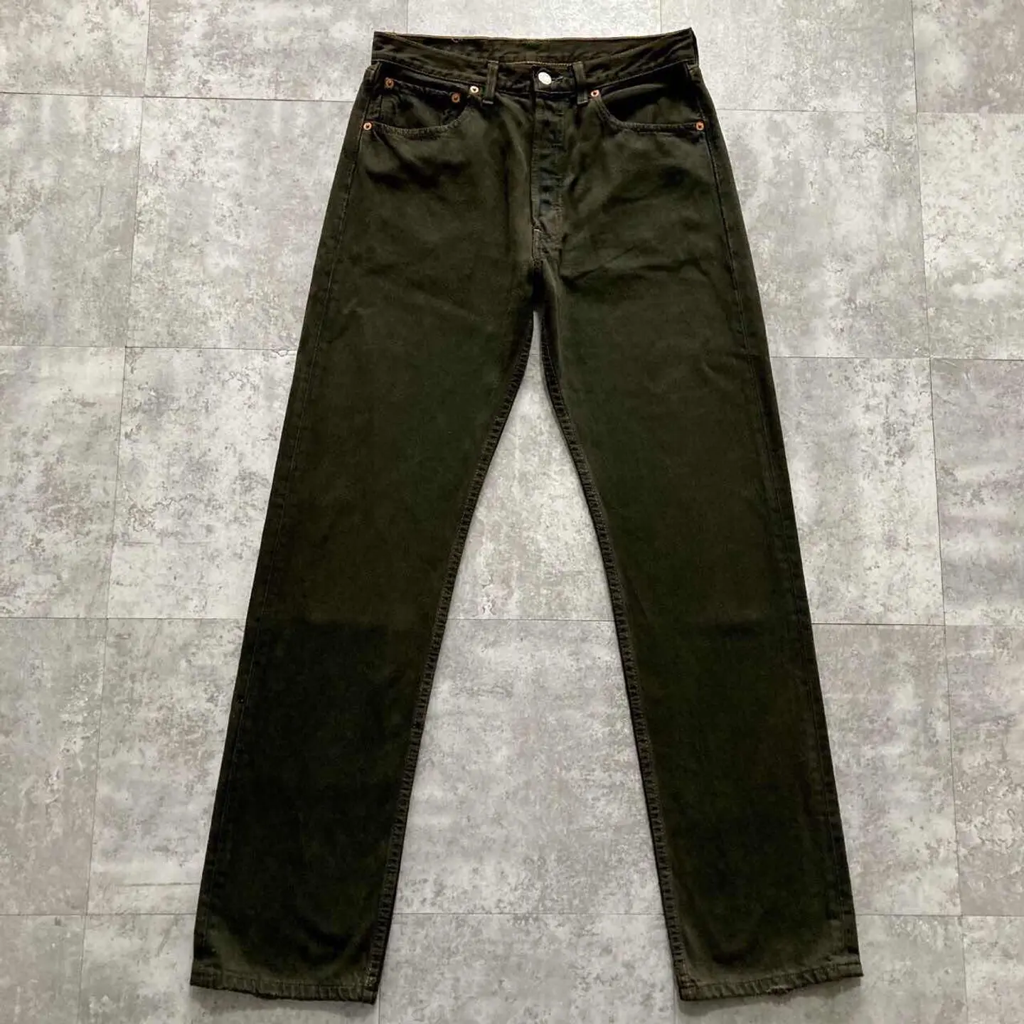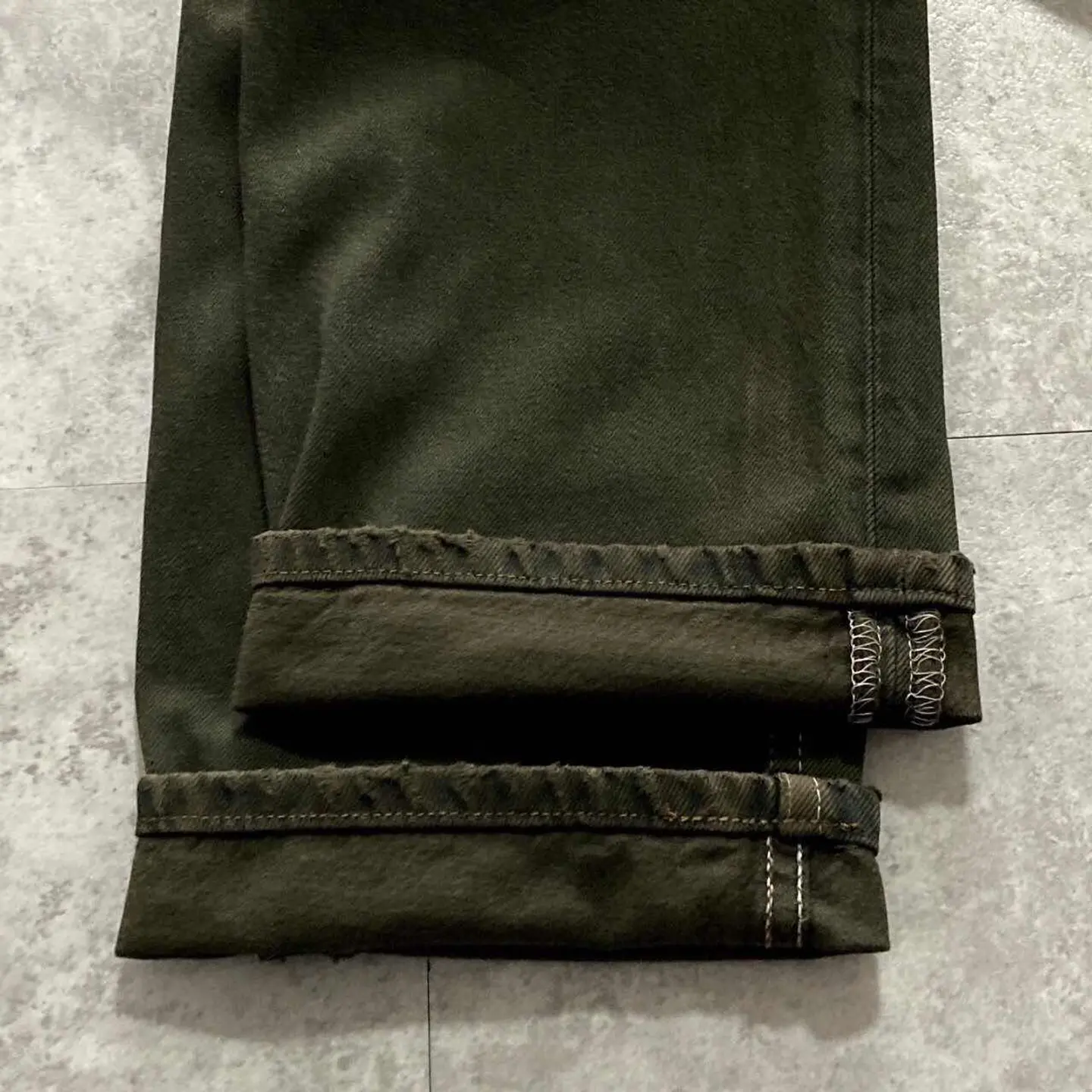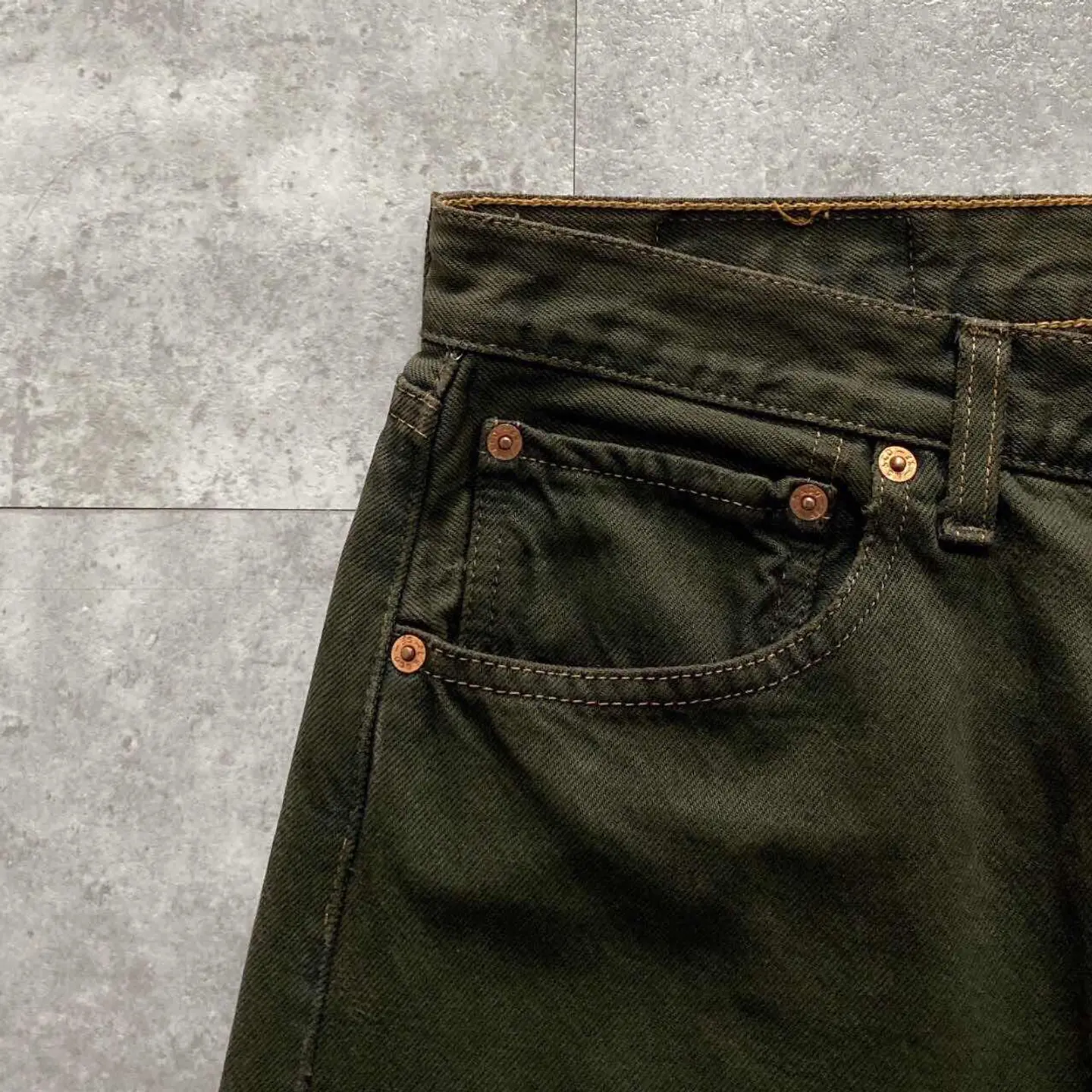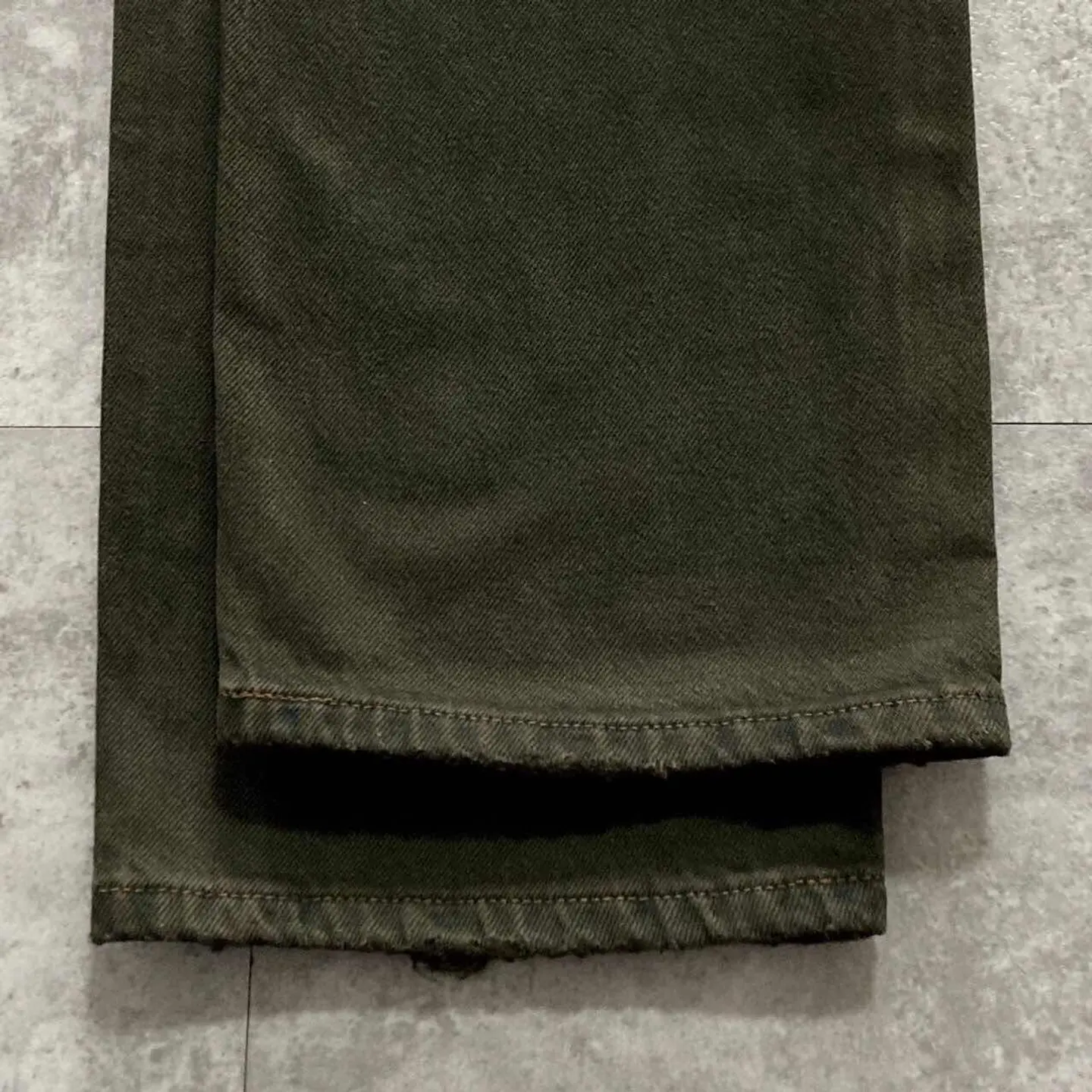 □Size□ 表記→W31 L32 実寸↓ 股上 : 28 股下 :80 ワタリ幅 : 30 裾幅 : 19 ウエスト : 38.5×2 (cm) □Colour□ ・濃いめカーキ □Material□ ・100%コットン □Condition□ ・裾.後ポケットに擦れた傷あり □Caution□ ・当店で取り扱っているアイテムは全て「古着」となっております。そのため、多少の擦れやほつれ、色あせや汚れ等が見られる場合がございます。新品同様の完璧なお品物をお求めの方は当店をご利用されないよう宜しくお願いします。 ・購入された商品につきましては、購入日から起算して「72時間以内の発送」とさせて頂きます。お急ぎの場合はオンラインストアの問い合わせフォームよりご連絡ください。可能な限り対応させて頂きます。 ・購入されら商品は基本的に「お客様都合での返品&キャンセル不可」となっております。決済が確定した時点で注文の取り消し等は不可のとなりますので、よくお考えの上購入検討の方をお願い致します。 【A-5500】