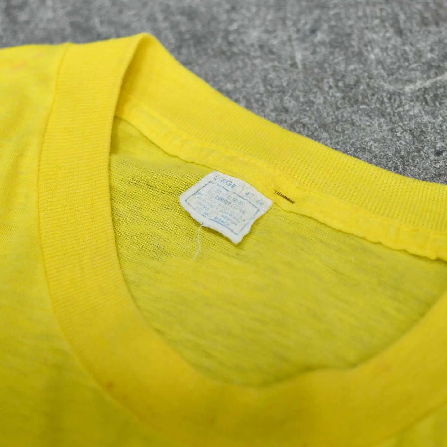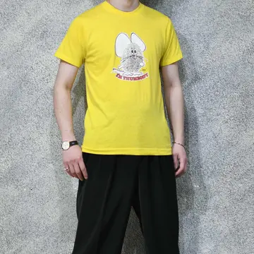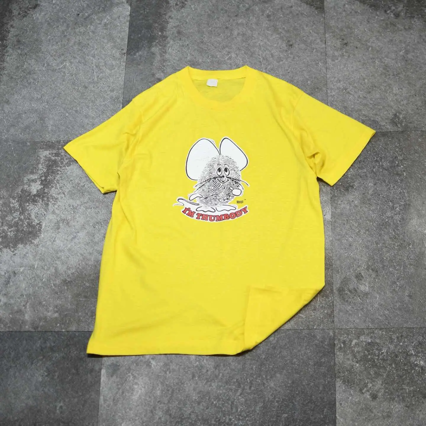着丈67cm 肩幅45cm 身幅51cm 袖丈20cm(シングルステッチ) fabric/質感よりcotton・poly 着用画像 177cm/64kg 70年代に、アメリカの教育関連で活躍した キャラクター。 "somebody"と"thumb"がかけられた、言葉遊び。 まあそんなのはどうでもいい程、 すこぶるダサくて可愛いTシャツ。 "売れる"という体験から好きになるアイテムは 無いですし、反対に"売れない"から嫌いになる アイテムも無かったなぁと。 たとえ後者になっても、絶対好きでいる Tシャツとして。 やっぱりかっこいいだけじゃつまらなくて、 ダサくてかっこいいとか、ダサくて可愛いとかが 良い。 すこぶるおすすめです。 ※肩に汚れあり。 ※撮影状況により、実物と多少色が異なる場合が ございます。 ※古着を取り扱っているため、気づかない汚れや ほつれ等がある場合がございます。 予めご了承ください。 ※サイズは着用感で選んでおり、表記サイズではございません。 古着 オーバーサイズ old vintage ヴィンテージ used 80's 90's アメリカ古着 ユーロ古着 メンズ レディース POLO RALPH LAUREN Eddie Bauer OLD GAP Eddie Bauer LANDS' END ランズエンド LLBean エルエルビーン オールドギャップ エディーバウアー ラルフローレン ブルックスブラザーズ Brooks Brothers 黄色 イエロー 半袖Tシャツ などがお好きな方 #vintage #オーバーサイズ #old #used #90s #80s #古着 #ヴィンテージ #アメリカ古着 #ユーロ古着 #古着男子 #古着女子 #LLBean #エルエルビーン #EddieBauer #エディーバウアー #oldgap #オールドギャップ #LANDSEND #ランズエンド #NAUTICA #ノーティカ #ラルフローレン #POLORALPHLAUREN #ブルックスブラザーズ #BrooksBrothers #シングルステッチ #70s #プリントTシャツ #Tシャツ #半袖Tシャツ#カラーTシャツ #キャラクターTシャツ