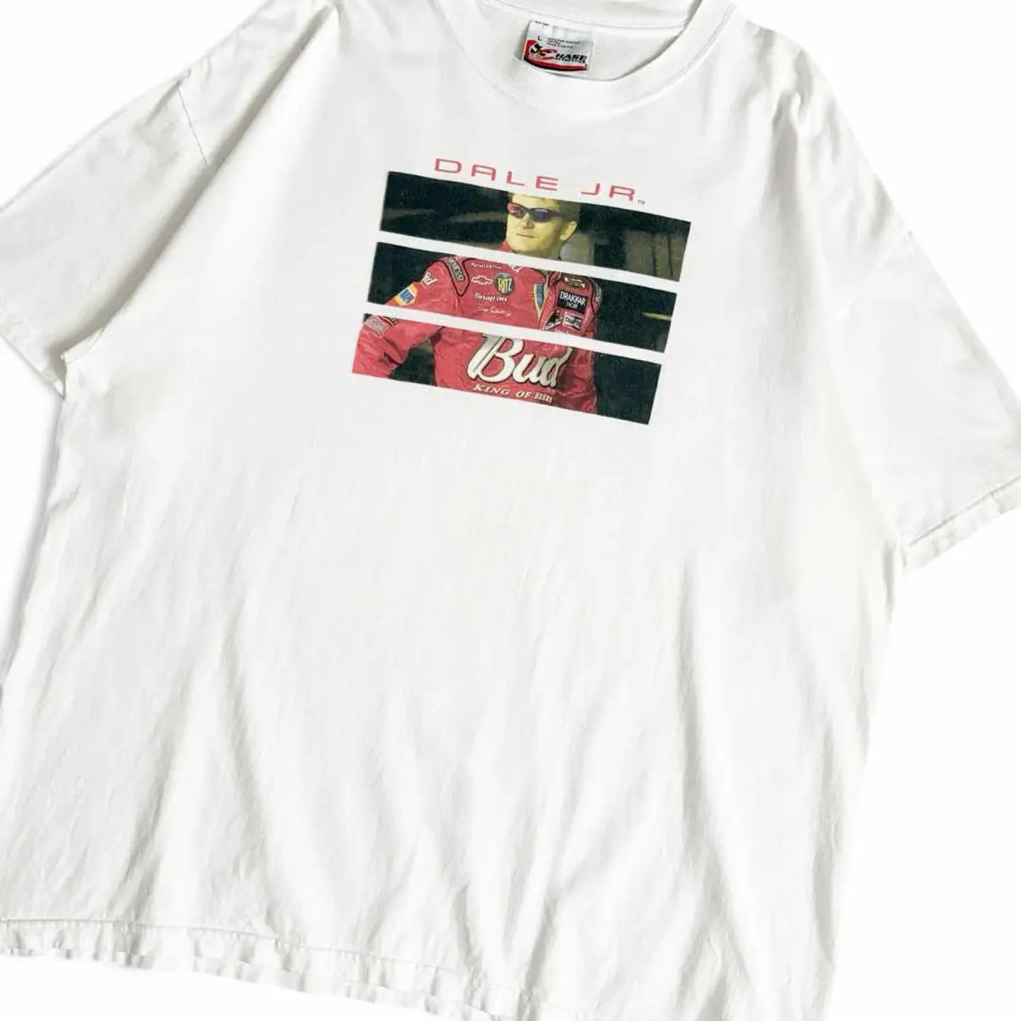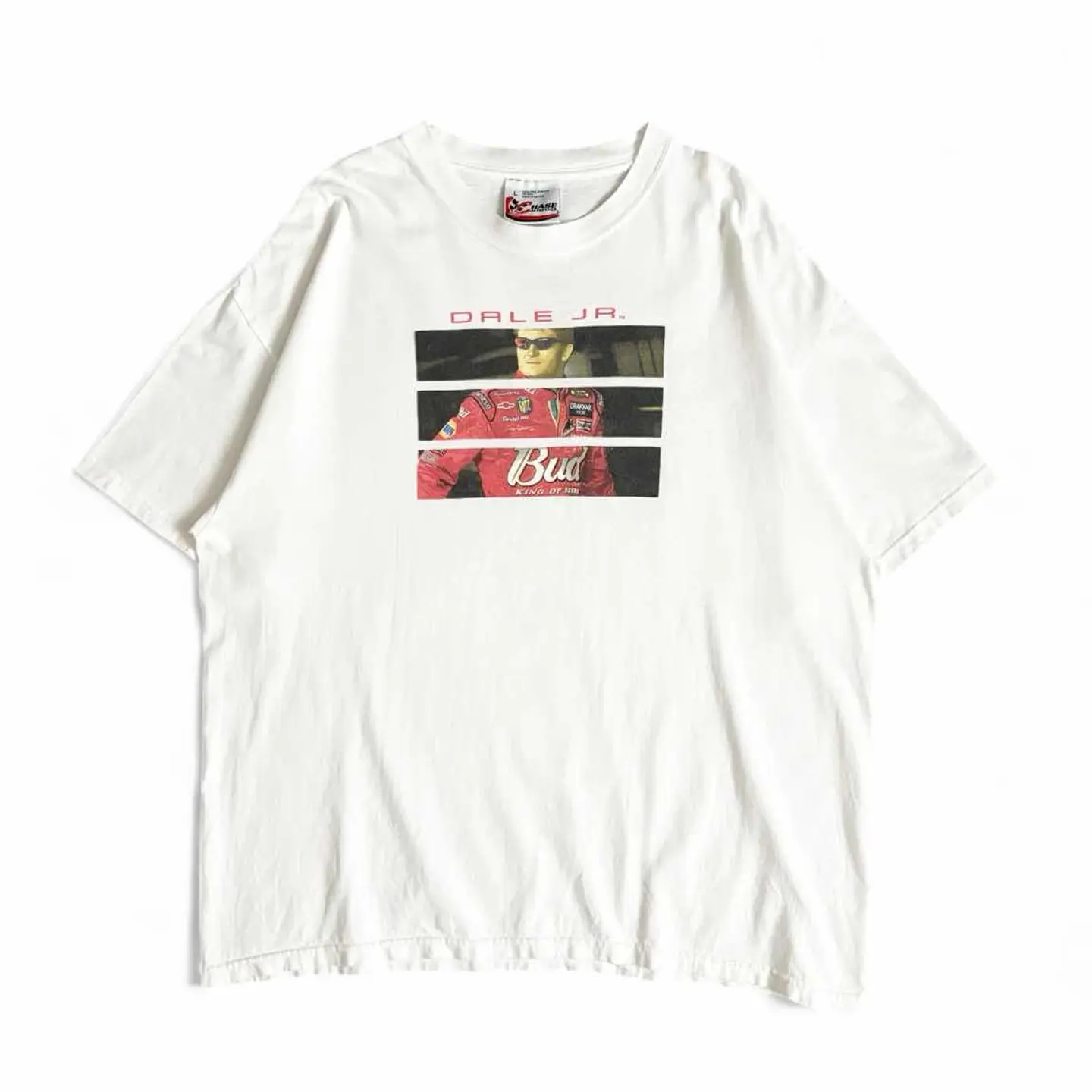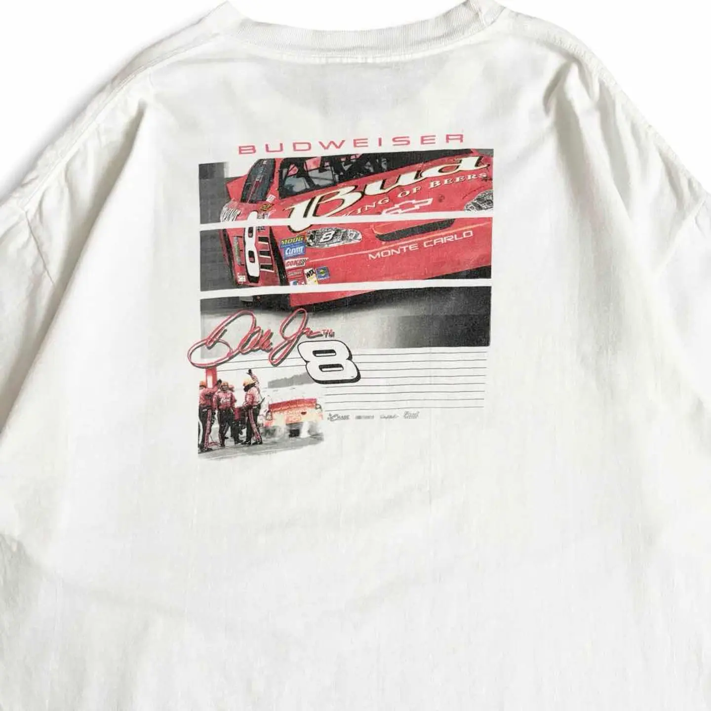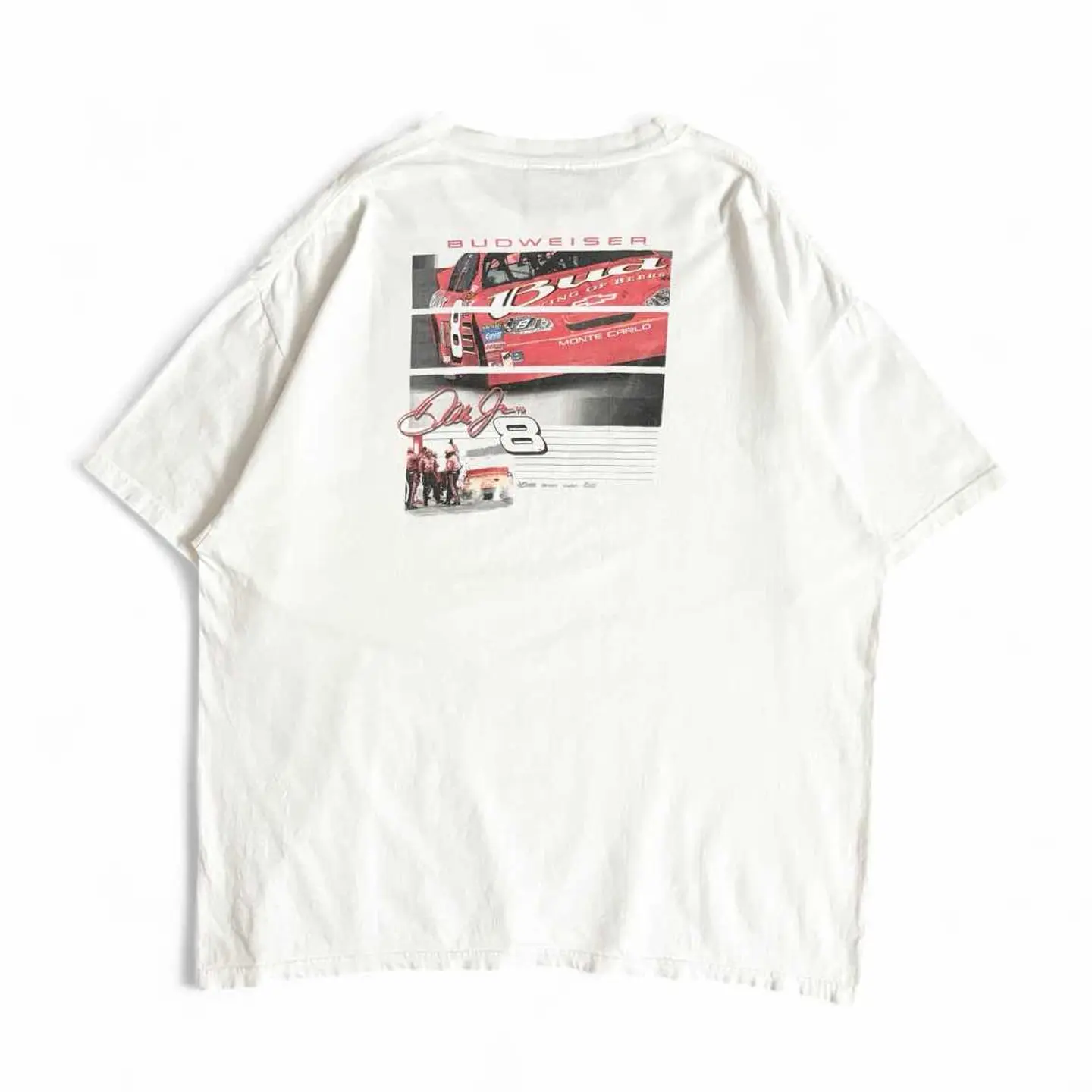 ○商品説明 Budweiser 非常にカッコいい一枚。 赤いレースカーにKING OF BEERSとデザイン されています。 ビールの中でNO.1のバドワイザーをスポンサーに してこのレースで一位を取るという願掛けでしょうか。 気になった方は是非。 ○サイズ 表記L 平置き ・肩幅59.5cm ・身幅62cm ・袖丈20.5cm ・着丈70.5cm ○商品の状態B A:使用感がほとんどなく、汚れやシミもなし B:多少使用感はあるが、汚れやシミも少ない C:使用感があり、汚れやシミがある D:使用感があり、大きな汚れや破れあり ○色 ホワイト #CHASEAUTHENTICS#Budweiser#バドワイザー#ビール#Tシャツ