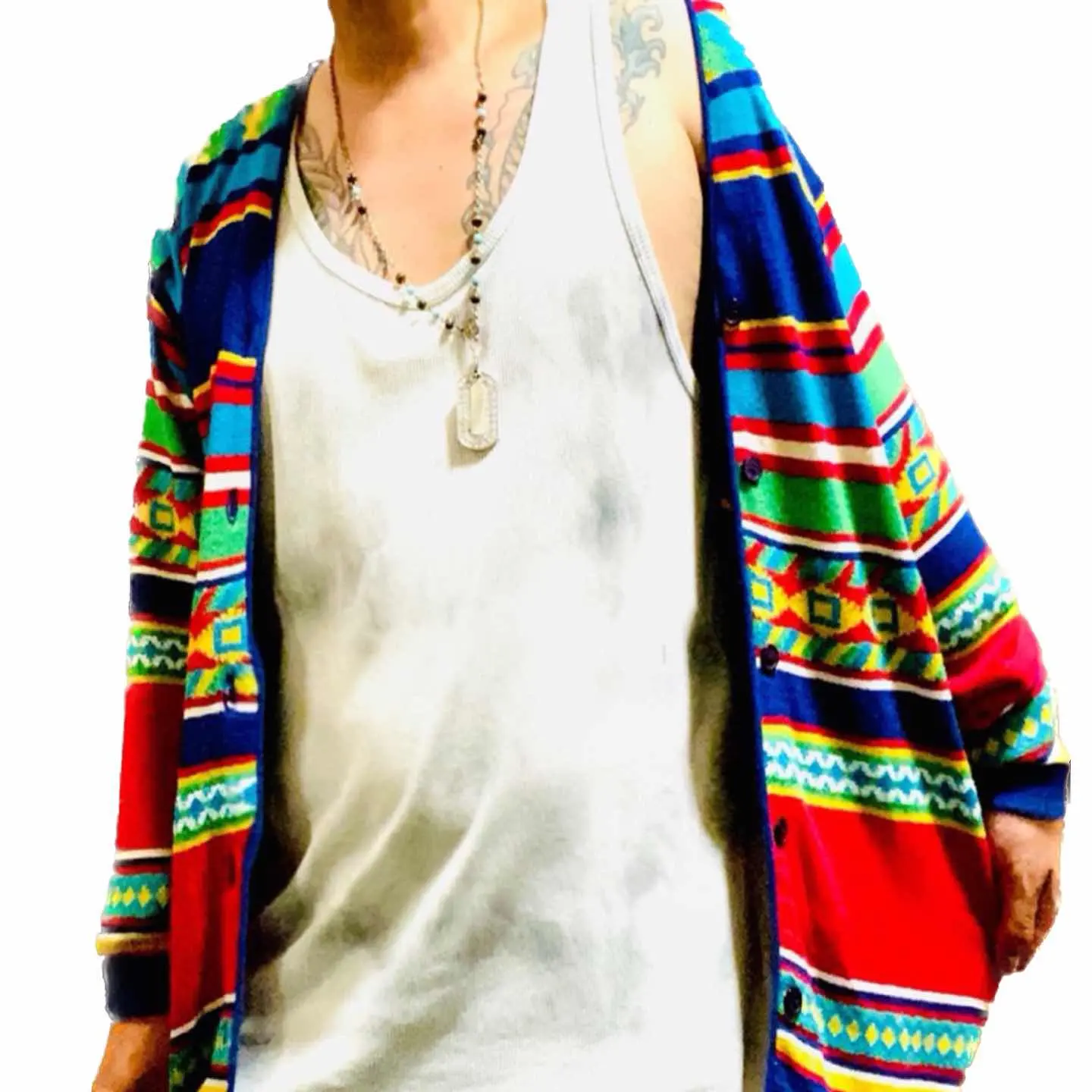 70-80s 旧JISタグMerinoWool幾何学cardigan
