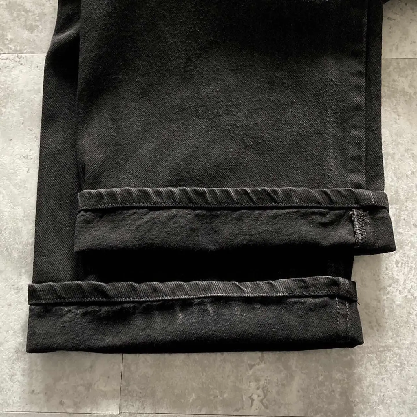 □Size□ 表記→表記不明 実寸↓ 股上 : 28.5 股下 : 71.5 ワタリ幅 : 33.5 裾幅 : 24 ウエスト : 45.5×2 (cm) □Colour□ ・ブラック (黒) □Material□ ・コットン100%だと思います □Condition□ ・内タグ欠損 □Caution□ ・当店で取り扱っているアイテムは全て「古着」となっております。そのため、多少の擦れやほつれ、色あせや汚れ等が見られる場合がございます。新品同様の完璧なお品物をお求めの方は当店をご利用されないよう宜しくお願いします。 ・購入された商品につきましては、購入日から起算して「72時間以内の発送」とさせて頂きます。お急ぎの場合はオンラインストアの問い合わせフォームよりご連絡ください。可能な限り対応させて頂きます。 ・購入されら商品は基本的に「お客様都合での返品&キャンセル不可」となっております。決済が確定した時点で注文の取り消し等は不可のとなりますので、よくお考えの上購入検討の方をお願い致します。 【A-5514】
