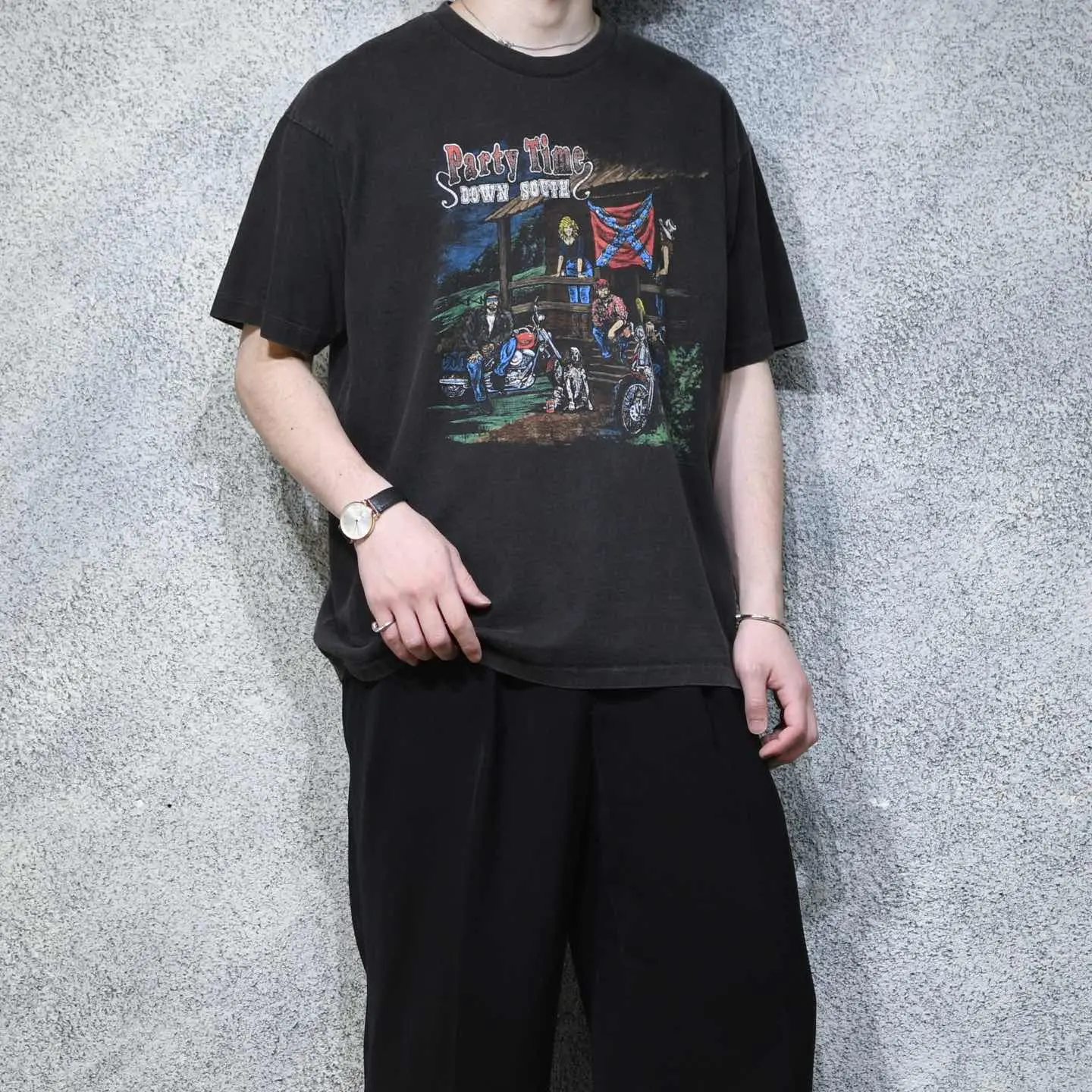 着丈70cm 肩幅59cm 身幅63cm 袖丈22cm(シングルステッチ) fabric/質感よりcotton 着用画像 177cm/64kg 皆同じ飲み物飲んでます。 フェードしたボディで雰囲気をしっかり兼ね備え、 それでいて透け感の無いボディの厚みは、 しっとりした肌触り。 そんなボディとひび割れ掠れたプリント、 時代を感じるTシャツです。 ※撮影状況により、実物と多少色が異なる場合が ございます。 ※古着を取り扱っているため、気づかない汚れや ほつれ等がある場合がございます。 予めご了承ください。 ※サイズは着用感で選んでおり、表記サイズではございません。 古着 オーバーサイズ old vintage ヴィンテージ used 80's 90's アメリカ古着 ユーロ古着 メンズ レディース POLO RALPH LAUREN Eddie Bauer OLD GAP Eddie Bauer LANDS' END ランズエンド LLBean エルエルビーン オールドギャップ エディーバウアー ラルフローレン ブルックスブラザーズ Brooks Brothers 黒 ブラック 半袖Tシャツ などがお好きな方 #vintage #オーバーサイズ #old #used #90s #80s #古着 #ヴィンテージ #アメリカ古着 #ユーロ古着 #古着男子 #古着女子 #LLBean #エルエルビーン #EddieBauer #エディーバウアー #oldgap #オールドギャップ #LANDSEND #ランズエンド #NAUTICA #ノーティカ #ラルフローレン #POLORALPHLAUREN #ブルックスブラザーズ #BrooksBrothers #プリントTシャツ #半袖Tシャツ #Tシャツ #シングルステッチ