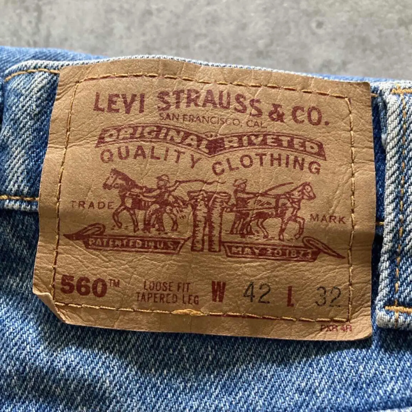 【W30 L34】Levis 501 PREMIUM レザーパッチ ボタンフライ 濃紺 デニムパンツ