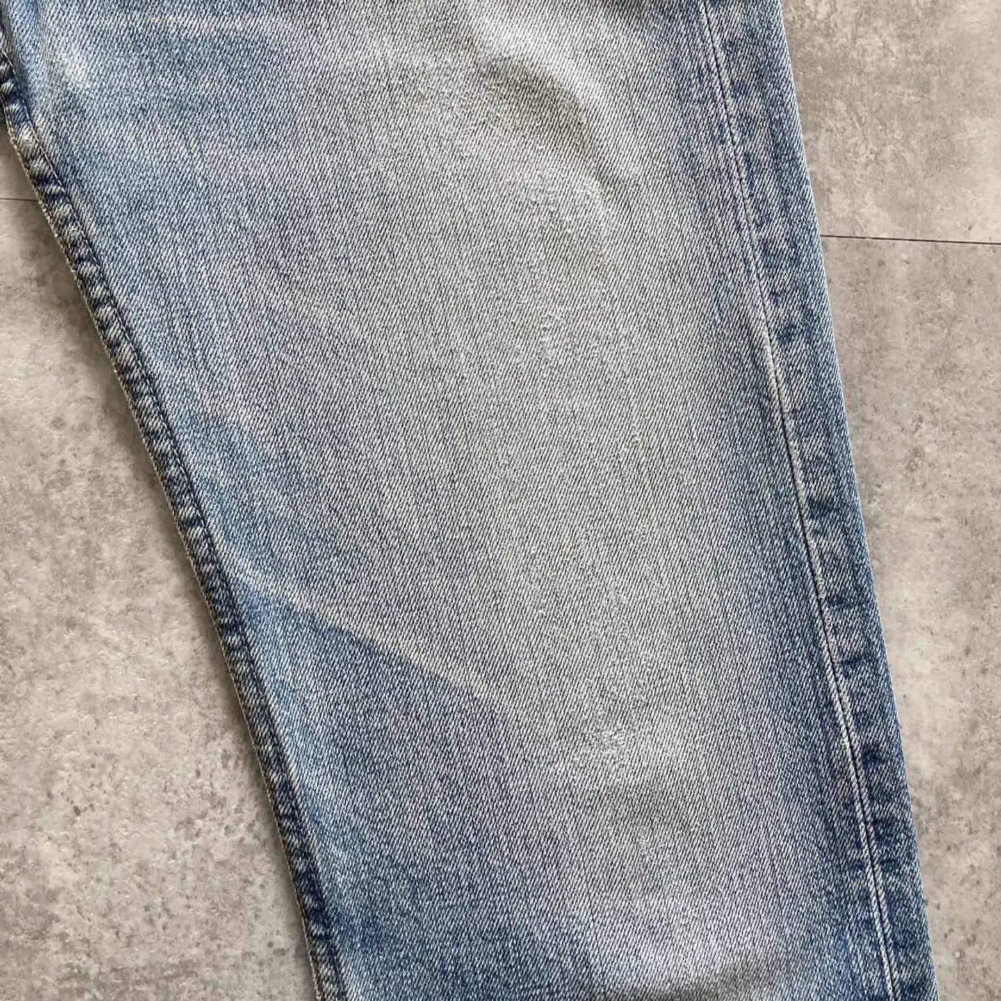 □Size□ 表記→W28 L32 実寸↓ 股上 : 27 股下 : 81 ワタリ幅 : 28 裾幅 : 18 ウエスト : 35×2 (cm) □Colour□ ・デニム紺 □Material□ ・100%コットン □Condition□ ・前後ポケット.太もも.膝.股付近に擦れた傷あり ・膝に汚れあり □Caution□ ・当店で取り扱っているアイテムは全て「古着」となっております。そのため、多少の擦れやほつれ、色あせや汚れ等が見られる場合がございます。新品同様の完璧なお品物をお求めの方は当店をご利用されないよう宜しくお願いします。 ・購入された商品につきましては、購入日から起算して「72時間以内の発送」とさせて頂きます。お急ぎの場合はオンラインストアの問い合わせフォームよりご連絡ください。可能な限り対応させて頂きます。 ・購入されら商品は基本的に「お客様都合での返品&キャンセル不可」となっております。決済が確定した時点で注文の取り消し等は不可のとなりますので、よくお考えの上購入検討の方をお願い致します。 【A-5522】