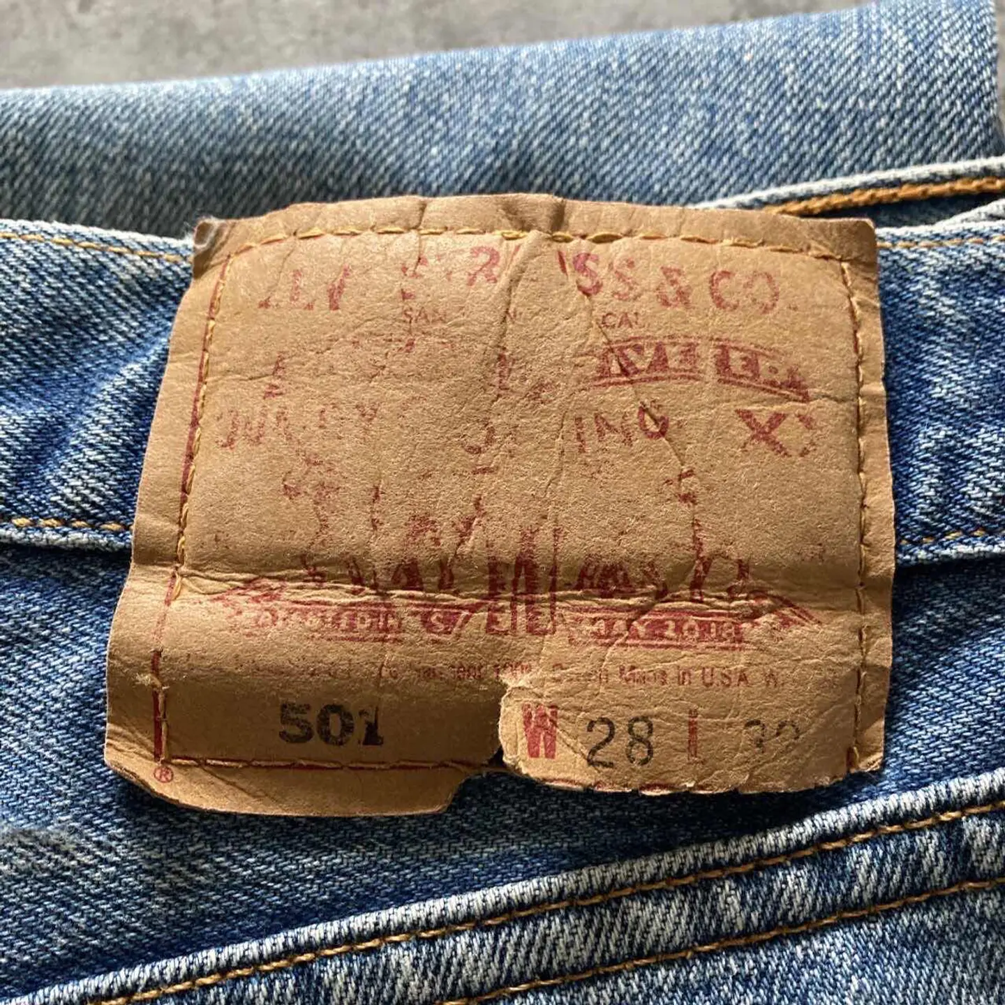 【W30 L34】Levis 501 PREMIUM レザーパッチ ボタンフライ 濃紺 デニムパンツ