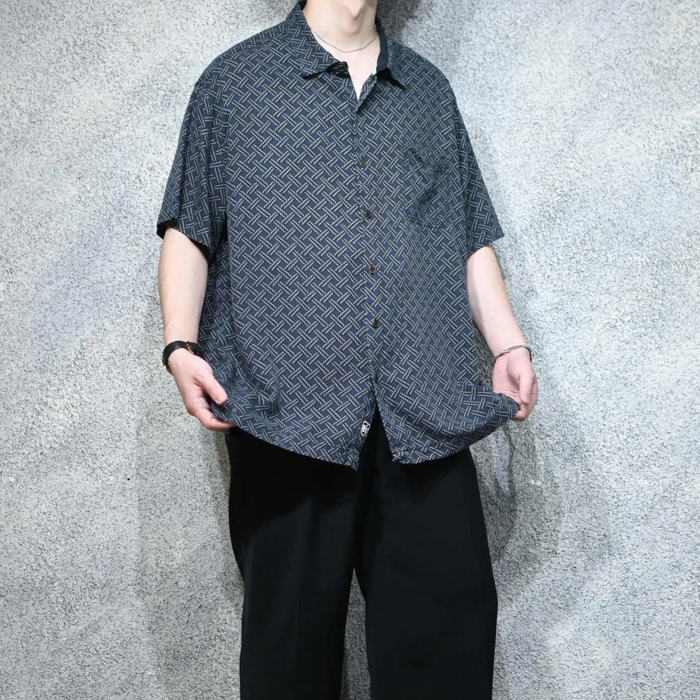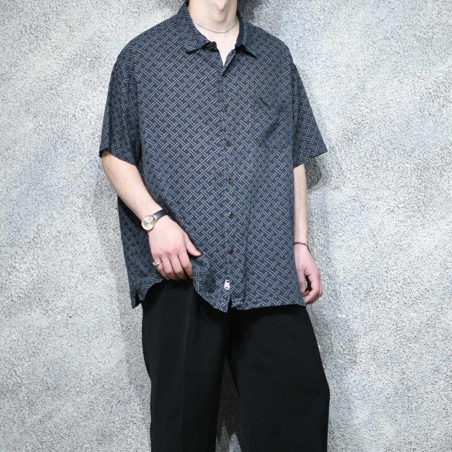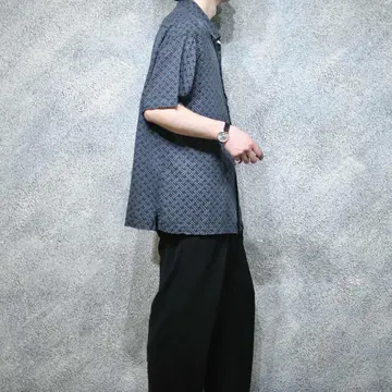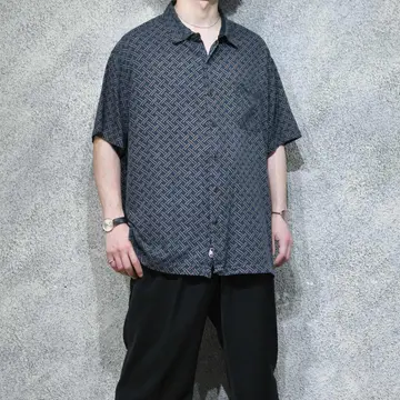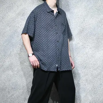 着丈79cm 肩幅58cm 身幅72cm 袖丈25cm fabric/silk・cotton 着用画像 177cm/64kg 1946年にボーリングシャツを手掛けるところから 始まった、アメリカのブランド"NAT NAST" そんなブランドだからこそ、ハンドステッチなど ヴィンテージのシャツで見掛けるディテールを 落とし込んでいたり、ボタンや縫製にも拘りが 伺える個体が多い印象です。 そしてこちらもその類。 生地を成す"織り"をモチーフにした柄でしょうか。 総柄でありながら上品で、かつシルクの落ち感まで 持ち合わせた逸品です。 裾にはちらりと見えるロゴ付き。 ※撮影状況により、実物と多少色が異なる場合が ございます。 ※古着を取り扱っているため、気づかない汚れや ほつれ等がある場合がございます。 予めご了承ください。 ※サイズは着用感で選んでおり、表記サイズではございません。 古着 オーバーサイズ old vintage ヴィンテージ used 80's 90's アメリカ古着 ユーロ古着 メンズ レディース POLO RALPH LAUREN Eddie Bauer OLD GAP Eddie Bauer LANDS' END ランズエンド LLBean エルエルビーン オールドギャップ エディーバウアー ラルフローレン ブルックスブラザーズ Brooks Brothers ネイビー 紺色 総柄シャツ などがお好きな方 #vintage #オーバーサイズ #old #used #90s #80s #古着 #ヴィンテージ #アメリカ古着 #ユーロ古着 #古着男子 #古着女子 #LLBean #エルエルビーン #EddieBauer #エディーバウアー #oldgap #オールドギャップ #LANDSEND #ランズエンド #NAUTICA #ノーティカ #ラルフローレン #POLORALPHLAUREN #ブルックスブラザーズ #BrooksBrothers #柄シャツ #総柄シャツ #半袖シャツ #シルクシャツ #NATNAST