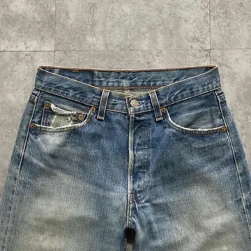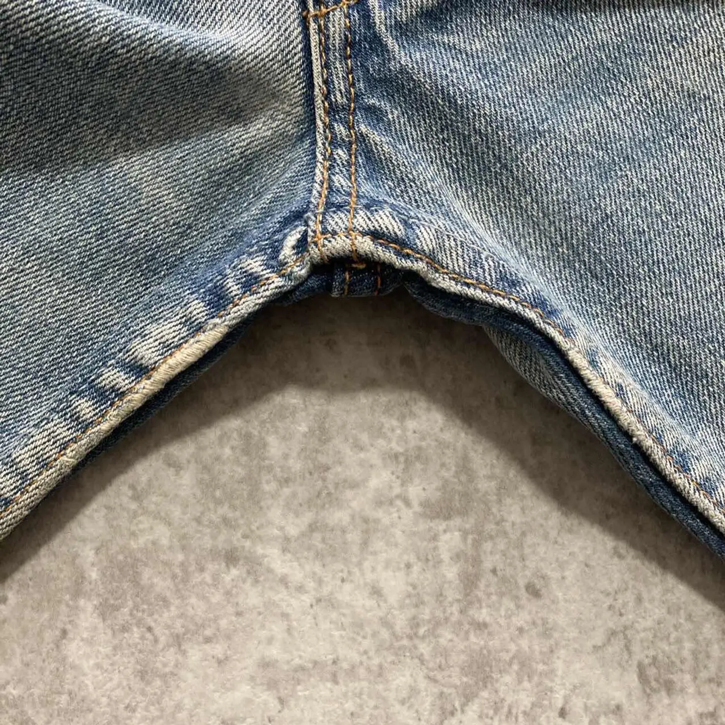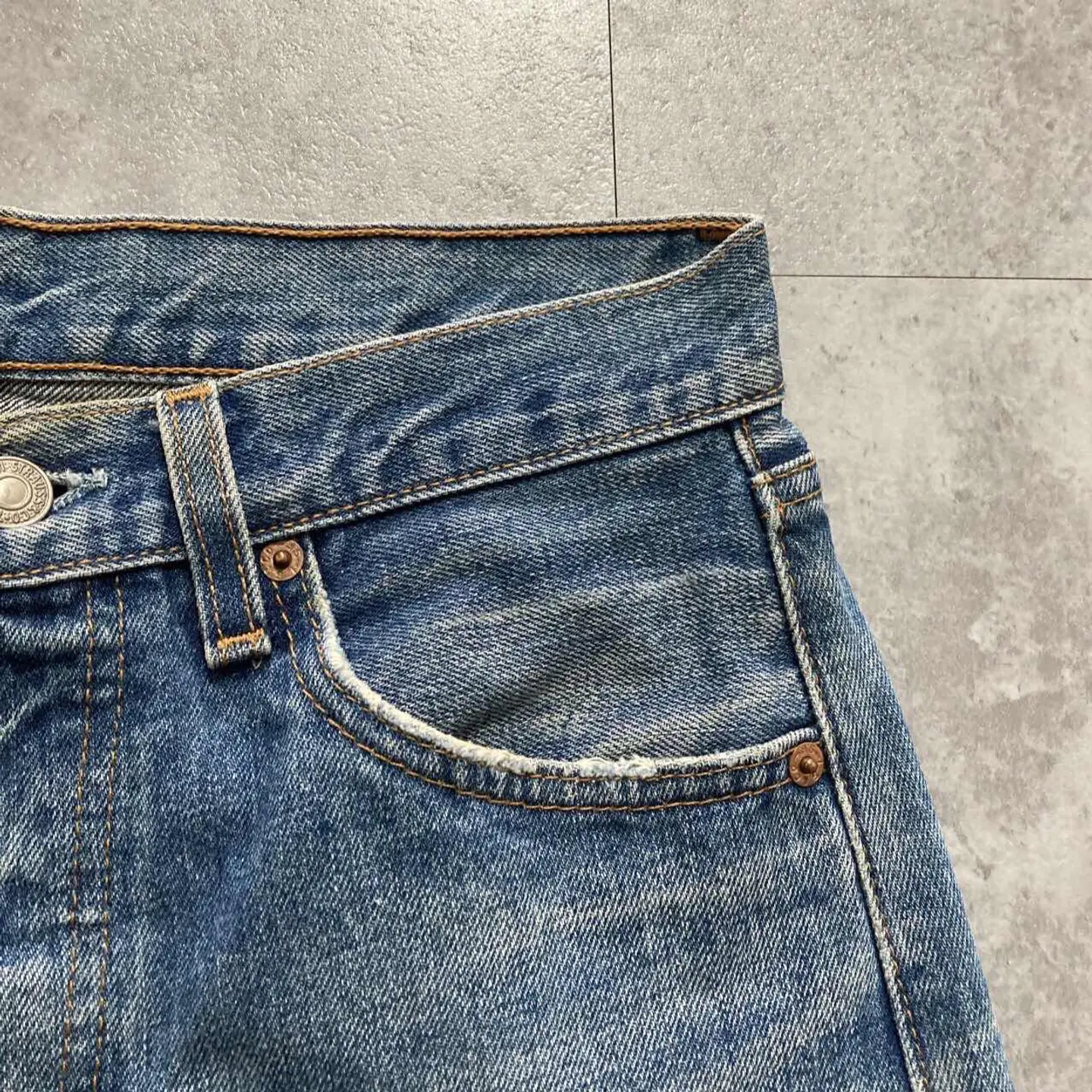 □Size□ 表記→W28 L32 実寸↓ 股上 : 26 股下 : 79.5 ワタリ幅 : 28 裾幅 : 18 ウエスト : 35.5×2 (cm) □Colour□ ・デニム紺 □Material□ ・100%コットン □Condition□ ・前後ポケット.膝.股付近.裾に擦れた傷あり ・後ポケット.太もも.裾に汚れあり □Caution□ ・当店で取り扱っているアイテムは全て「古着」となっております。そのため、多少の擦れやほつれ、色あせや汚れ等が見られる場合がございます。新品同様の完璧なお品物をお求めの方は当店をご利用されないよう宜しくお願いします。 ・購入された商品につきましては、購入日から起算して「72時間以内の発送」とさせて頂きます。お急ぎの場合はオンラインストアの問い合わせフォームよりご連絡ください。可能な限り対応させて頂きます。 ・購入されら商品は基本的に「お客様都合での返品&キャンセル不可」となっております。決済が確定した時点で注文の取り消し等は不可のとなりますので、よくお考えの上購入検討の方をお願い致します。 【A-5531】