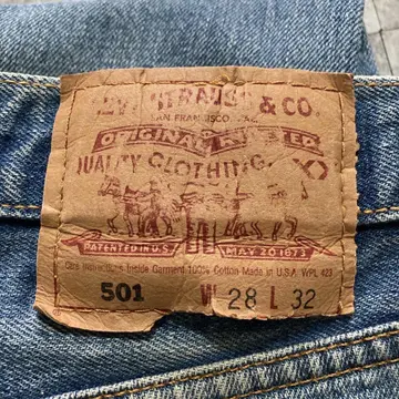 【W30 L34】Levis 501 PREMIUM レザーパッチ ボタンフライ 濃紺 デニムパンツ