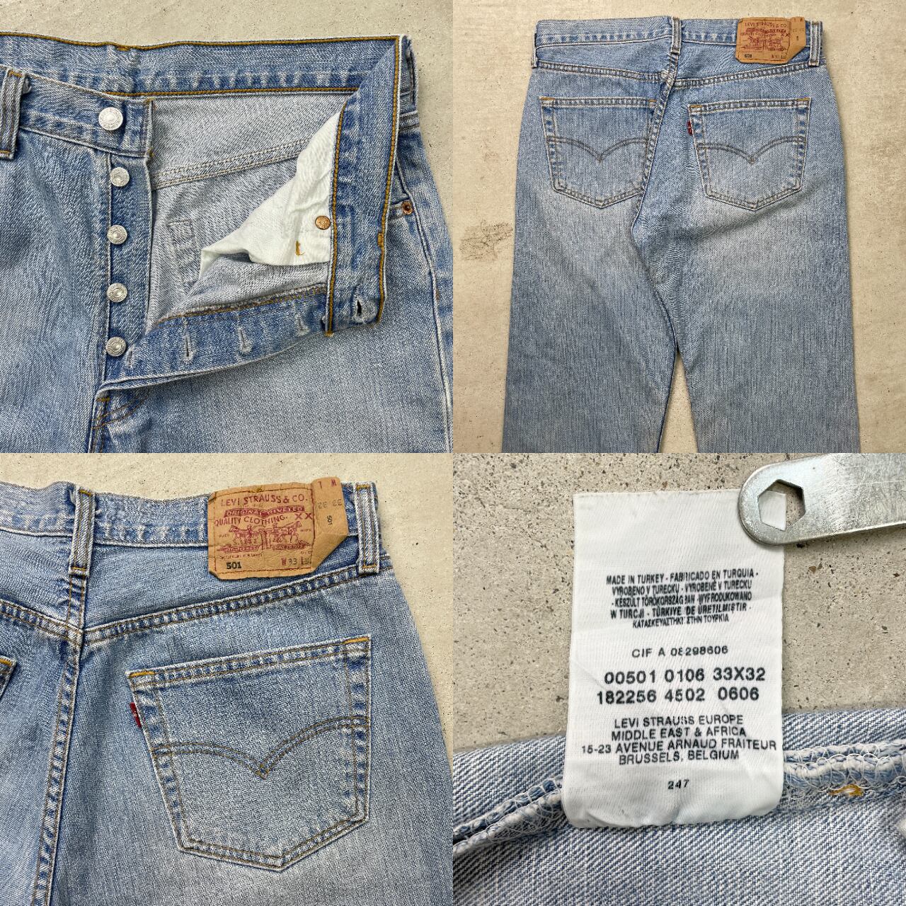 ■00年代 トルコ製 Levi's ユーロリーバイス 501 デニムパンツ ストレート メンズW33 古着 00s Y2K VINTAGE ヴィンテージ アメカジ ジーンズ【デニムパンツ】/ブルー 【ブランド】Levi's リーバイス 【サイズ】表記 W33 L32 ※計測値をご確認ください。 ウエスト(平置き×2)…84 ワタリ幅…29 股上…28 股下…71 裾幅...20 【生産国】トルコ製 【素材】コットン100% 【状態】股部分や裾に生地擦れ、裾付近など数か所に汚れがございます。 裾上げされております。 画像にてご確認ください。 【c250609021】 ※古着は洗濯、検品などのケアを行っております。(新品・デッドストックは洗濯していません。) ※モニターの発色により実物と異なる場合がございます。予めご了承ください。 ※ 海外直輸入USED品になります。