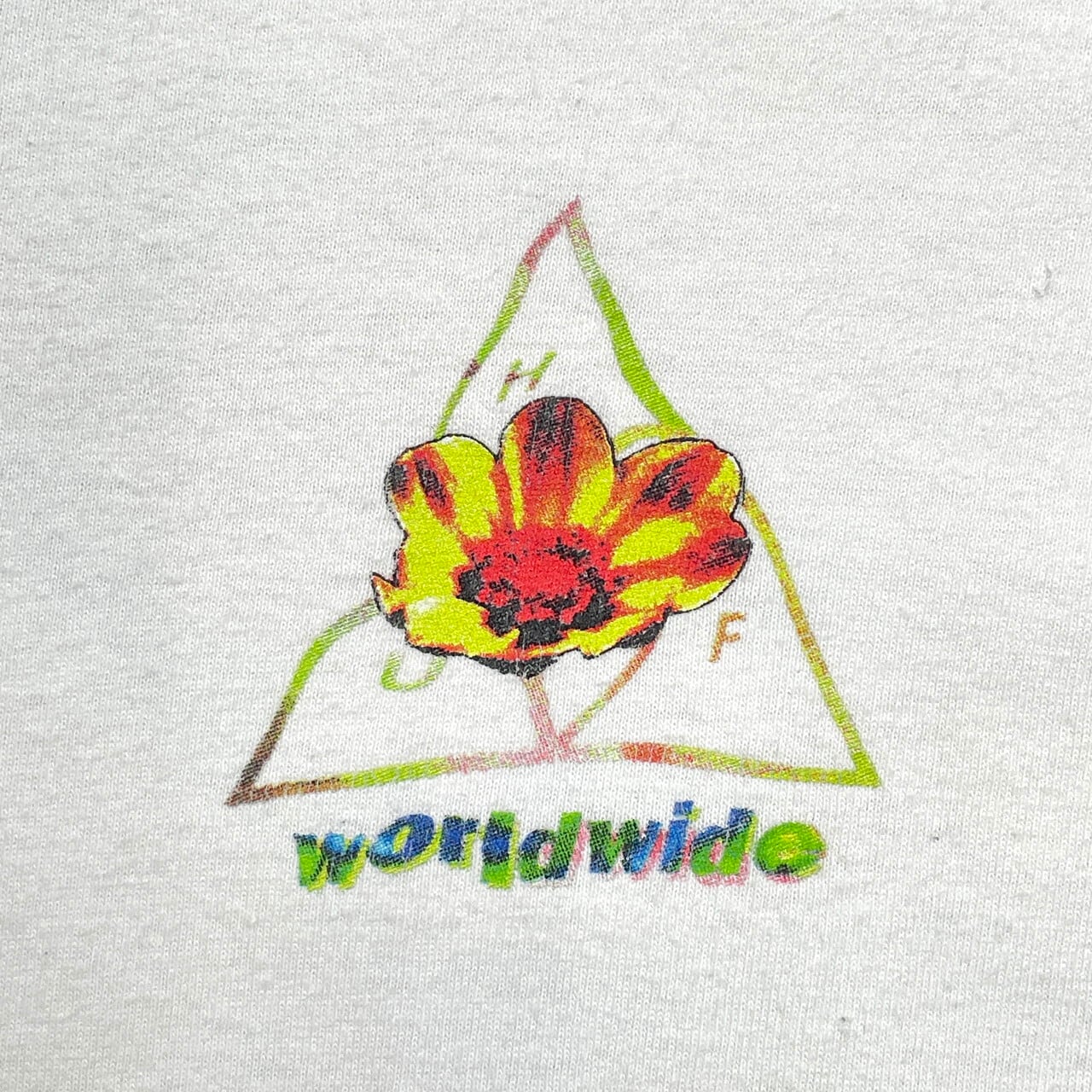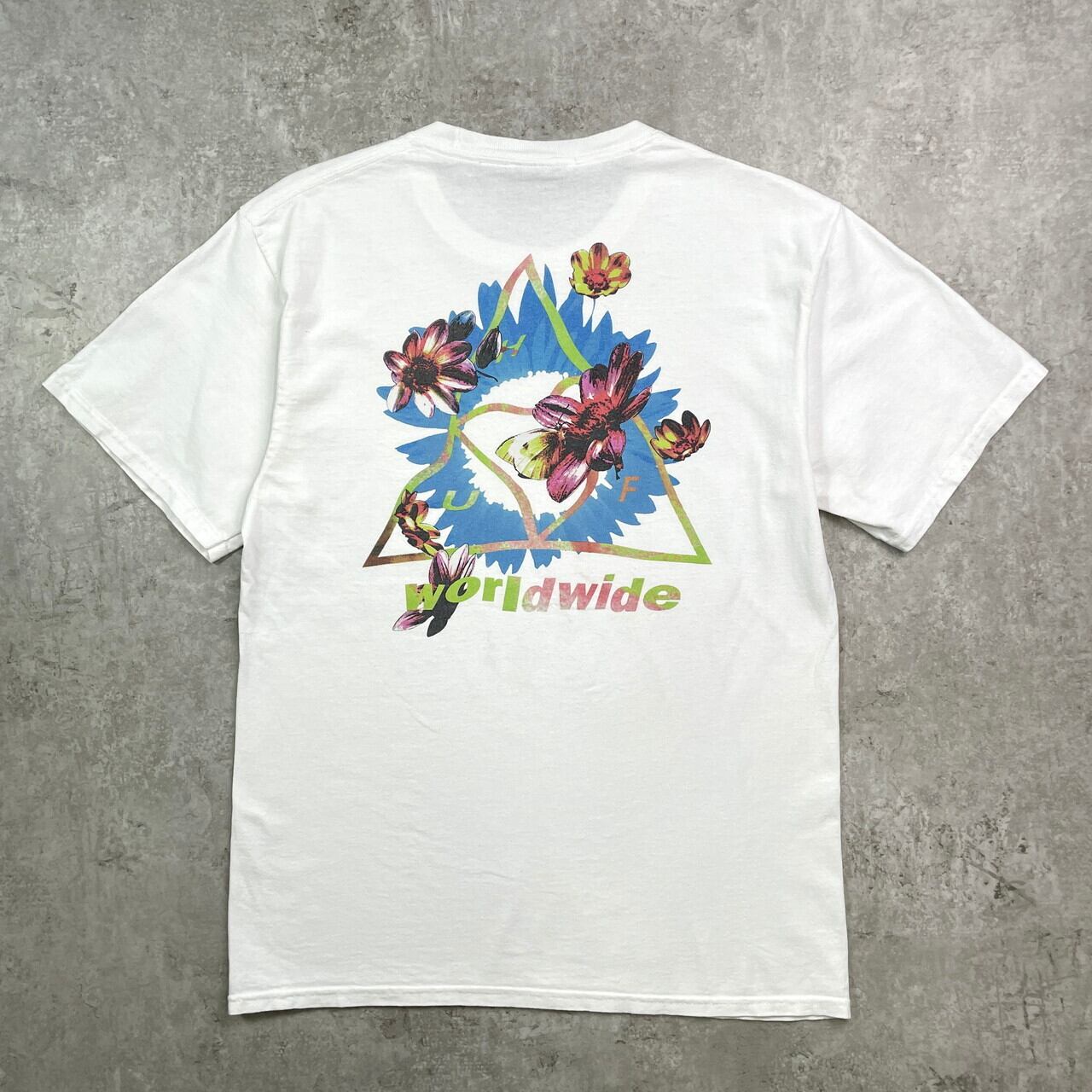 ■HUF ハフ プリントTシャツ スケート ストリート メンズM 古着 フラワー 白色【Tシャツ】/ホワイト 【ブランド】HUF ハフ 【サイズ】表記 M ※計測値をご確認ください。 着丈…66.5 身幅…49 肩幅…47.5 袖丈…21 【生産国】ホンジュラス製 【素材】コットン100% 【状態】多少の使用感は御座いますが、目立ったダメージや汚れは御座いません。 画像にてご確認ください。 【c250607061】 ※古着は洗濯、検品などのケアを行っております。(新品・デッドストックは洗濯していません。) ※モニターの発色により実物と異なる場合がございます。予めご了承ください。 ※ 海外直輸入USED品になります。