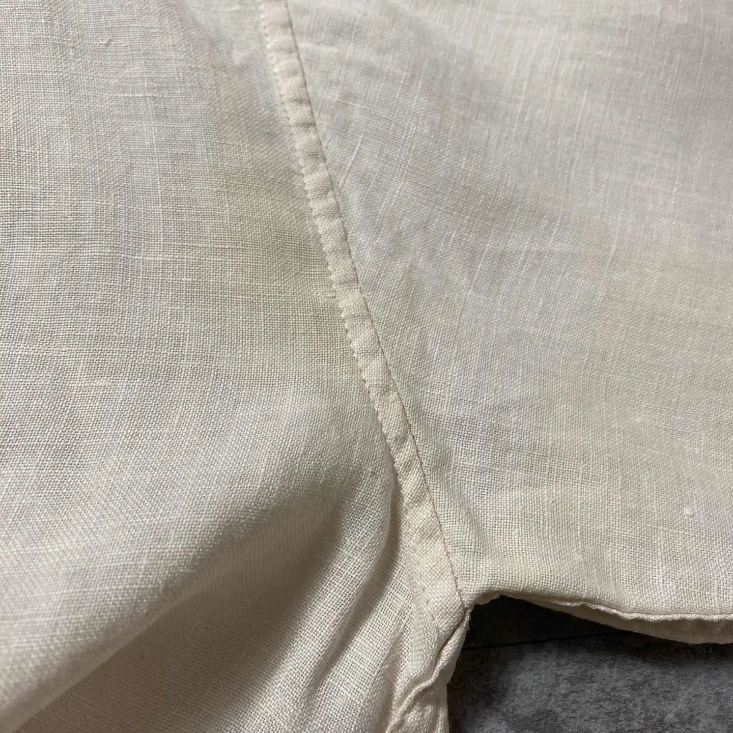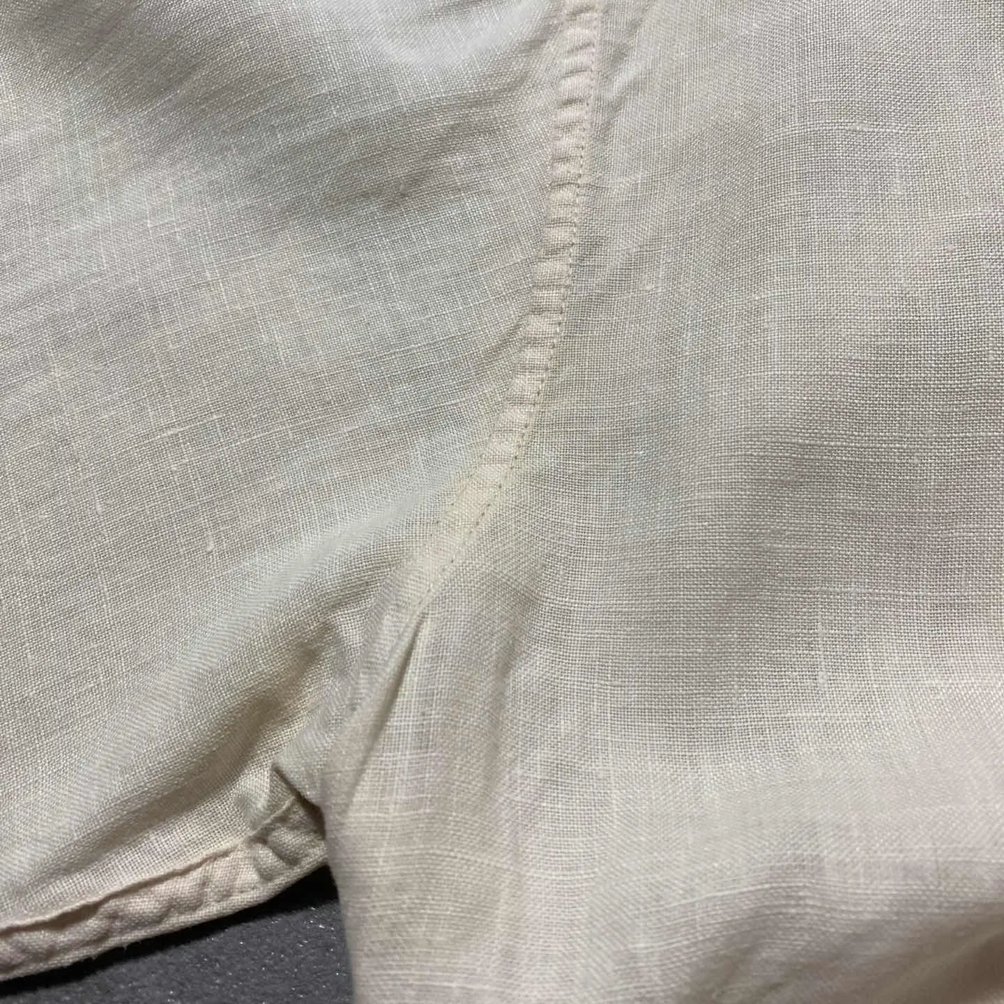 ○Size○ 表記→M(実際の着用感XLサイズ相当) ・着丈82 ・身幅63 ・肩幅54 ・袖丈57 (cm) ○Color○ ・ホワイト ○Material○ ・100%リネン ○Condition○ ・両脇に薄ら黄ばみあり ○Caution○ 当店で取り扱っている商材は全て『古着』となっております。 そのため、多少の状態難(ほつれ、傷、汚れ、リブの伸び、使用感、擦れ、色あせ、etc)がある場合がございます。 新品同様の完璧なお品物をお求めの方は当店でのお買い物を控えて頂きますよう宜しくお願いします。 また、購入された商品に関しましては、購入日時から起算して『72時間以内に』発送手続きの方を取らせて頂きます。 お急ぎの場合は購入前に当店オンラインストアの方にお問い合わせ頂きますよう宜しくお願いします。 25/875