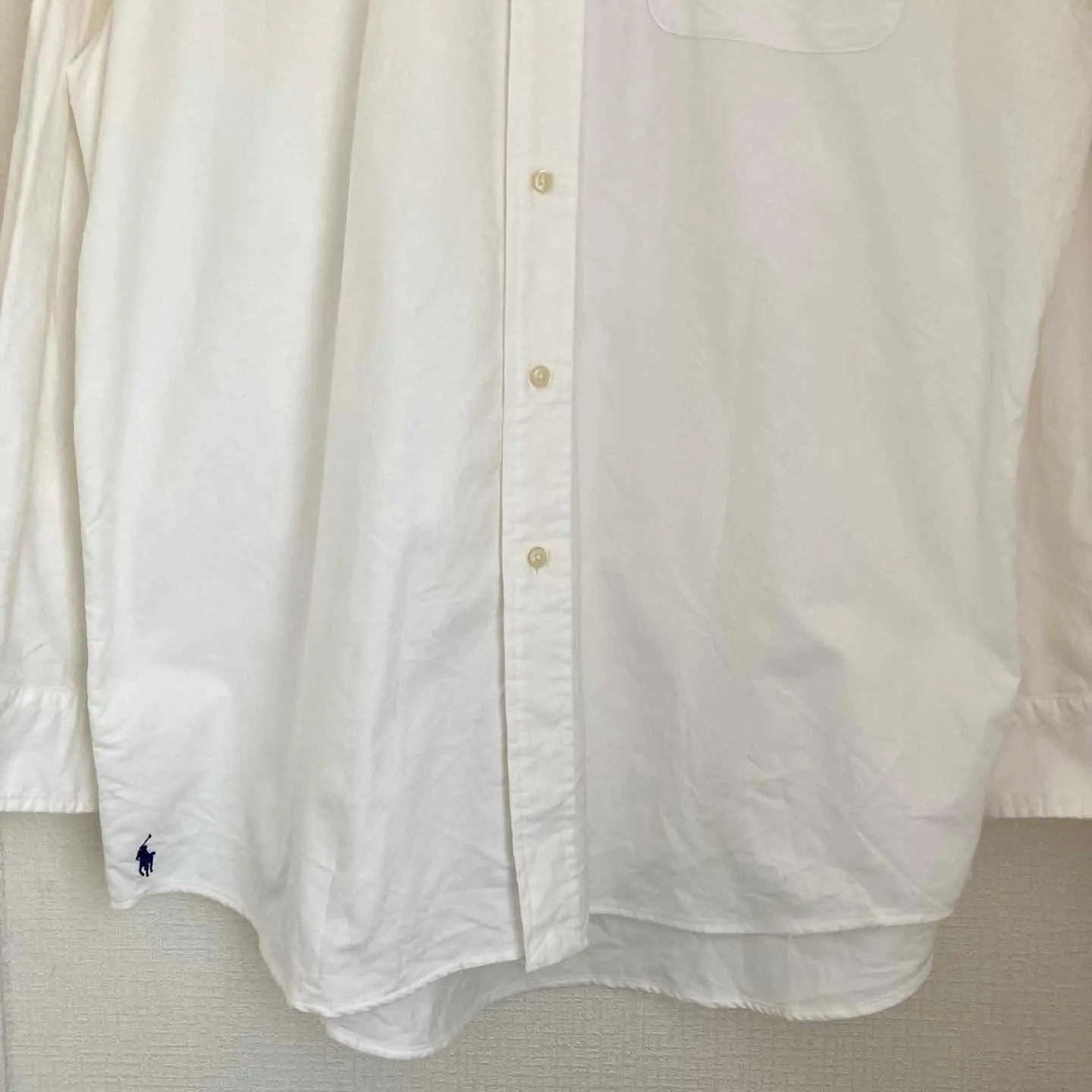 ■デザイン ラルフローレンが誇る、THE BIG FITが特徴の長袖シャツ。クラシックなホワイトカラーに、シンボリックな馬のポロ刺繍が施され、スタイリッシュさと伝統を兼ね備えた一枚です。 大きめのシルエットがリラックス感をもたらし、ゆったりとした着心地でシーズンを問わず楽しめます。 柔らかな素材が肌に優しく、アメカジスタイルを一層引き立てる存在感があります。カジュアルな場面でも、ちょっとしたお出かけにも対応する万能なシャツです。 ■コーディネート デイリーユースや友人とのカジュアルな集まりに最適なアイテムです!シンプルなTシャツやスウェットの上に羽織ることで、抜け感のあるアメカジスタイルを簡単に楽しむことができます。 また、デニムやチノパンとも相性抜群で、普段使いから特別なシーンまで幅広く活躍します。軽やかなアウターをプラスすることで、季節の変わり目にも対応できる頼もしい一枚です。 ブランド POLO Ralph Lauren 商品名 ラルフローレン THE BIG FIT 長袖 シャツ ホワイト メンズ ロゴ 刺繍 馬 ポニー 大きめ ゆったり アメカジ サイズ Mサイズ 肩幅56㎝ 身幅66㎝ 袖丈59㎝ 着丈81㎝ カラー ホワイト系 #ABY280 #ふくしるべのシャツ